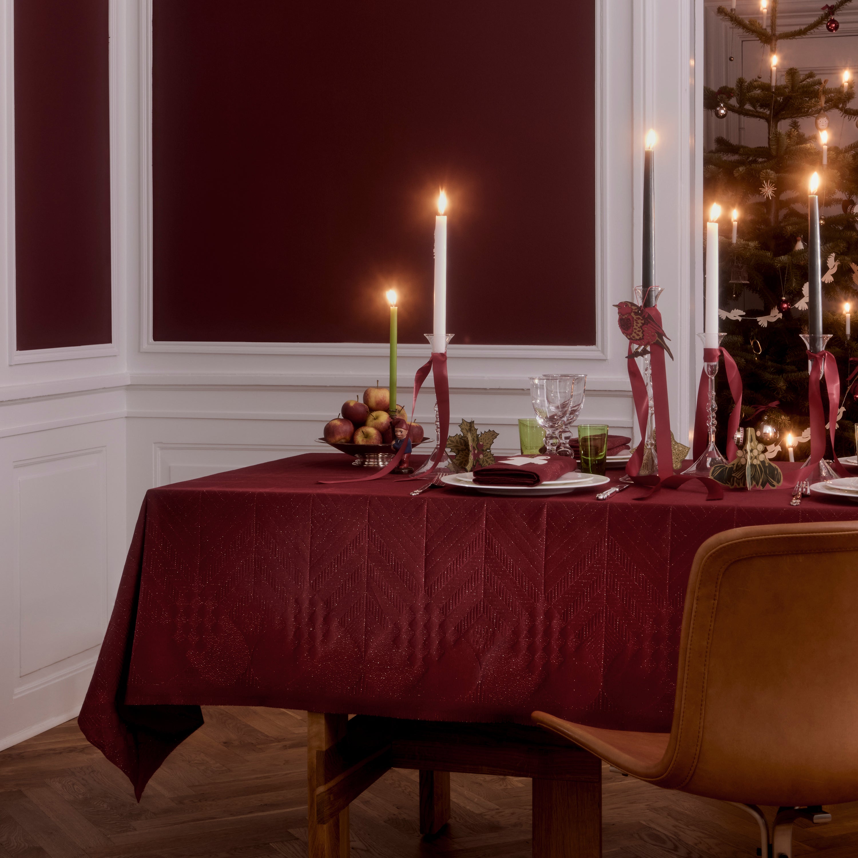 The classic white variant of Georg Jensen Damask’s Christmas Tablecloth provides an elegant canvas for your festive table setting.