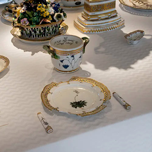Image 6: For the Flora Danica exhibition at Koldinghus, Georg Jensen Damask recreated the tablecloth used the very first time the porcelain tableware was used to set the table in 1803. Photo: Marie Tuxen Hedegaard.