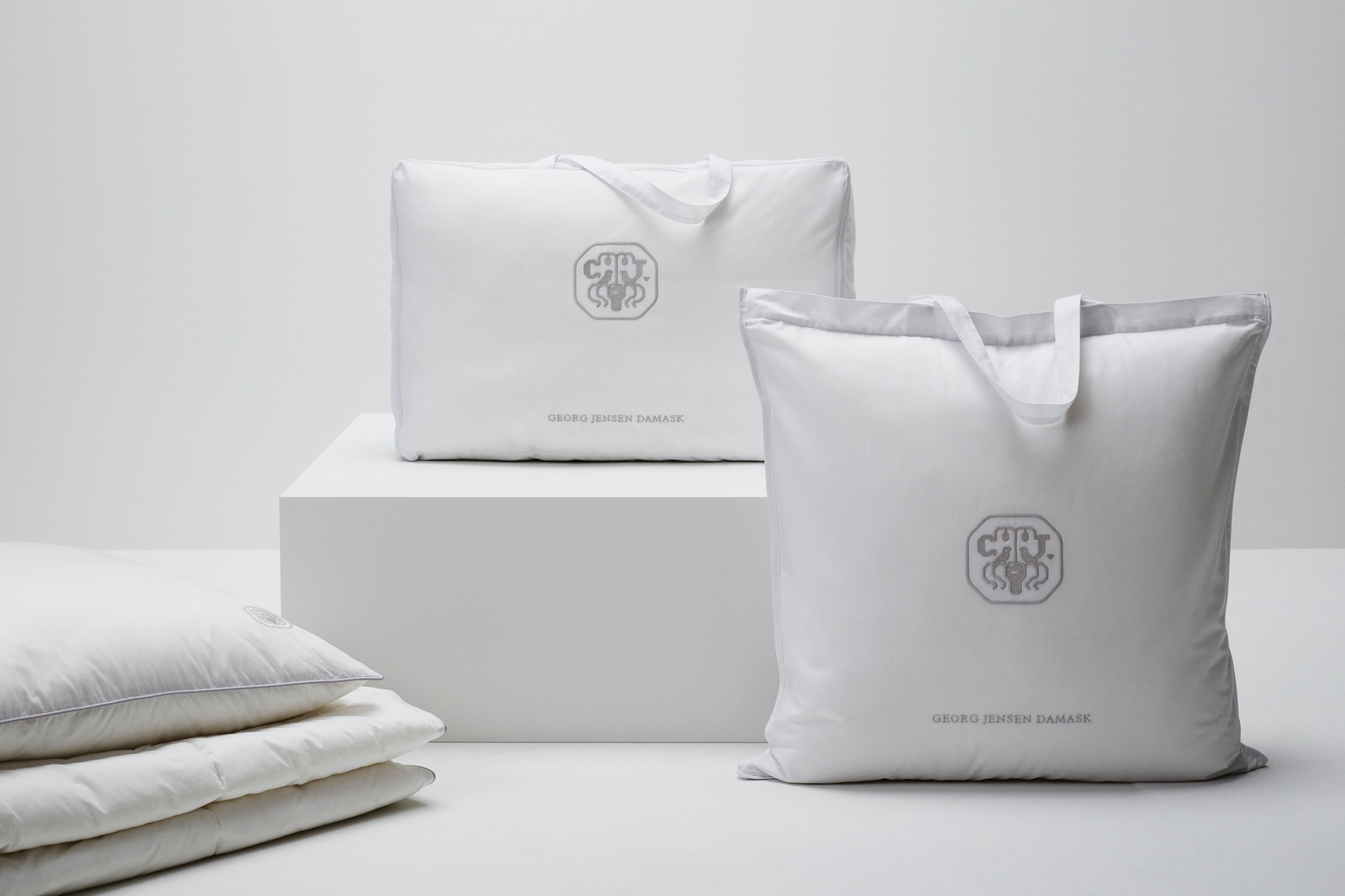 As a symbol of quality and care, both the duvets and pillows feature Georg Jensen Damask's iconic logo as a discreet embroidery.