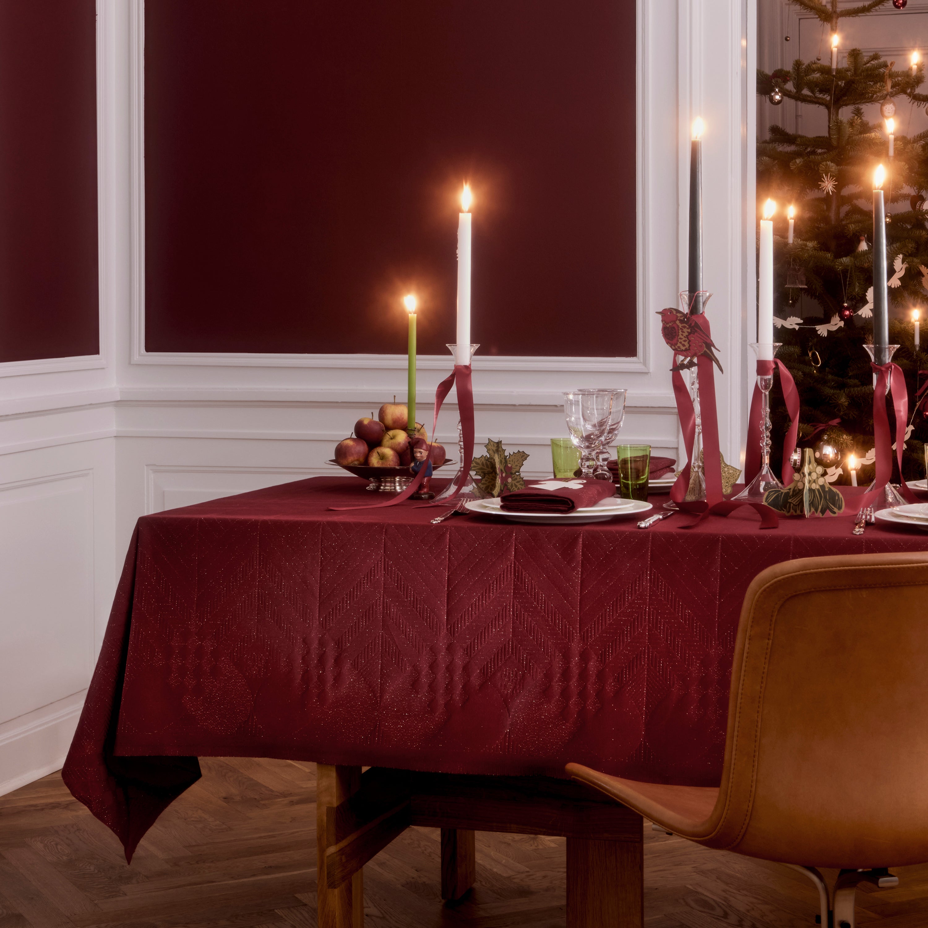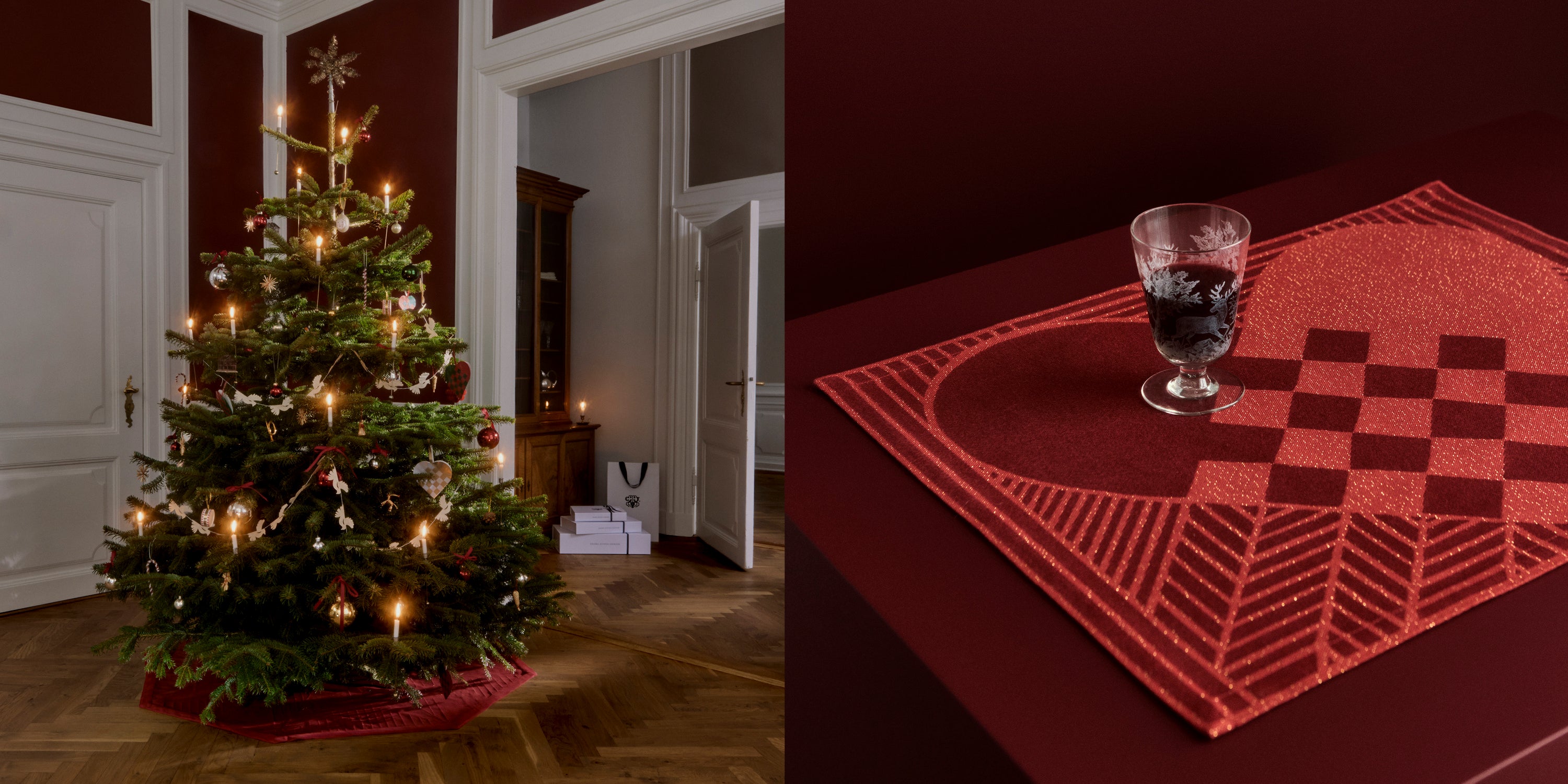 Til jubilæumsserien hører også dækkeservietter og juletræstæppe i Gold Red.