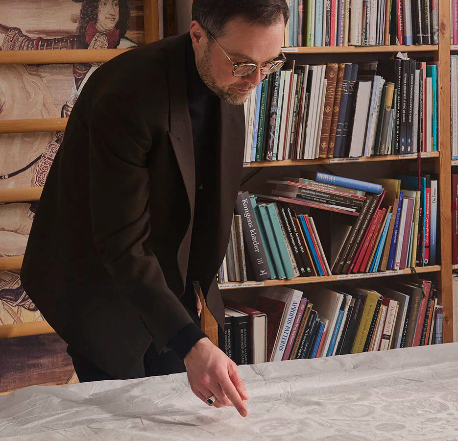 Når Christian 4. i 1620’erne inviterede til middag på Rosenborg Slot, krævede det en særlig pragtdug, der kunne være samlingspunkt for det gode måltid og den festlige stund. Helt eksklusivt og i samarbejde med Kongernes Samling har Georg Jensen Damask fået lov at arbejde med det kulturhistoriske mønster på dugen og har med respekt for det oprindelige skabt en moderne fortolkning.