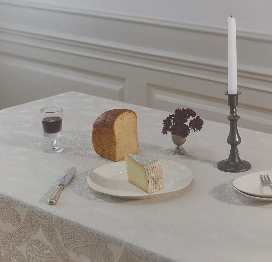 ”Sct. Knuds Ørne-dug rummer både stor danmarkshistorie og nære, familiære fortællinger, der giver den en særlig plads i Georg Jensen Damask-kollektionen. Vi har kunder, som fortæller, at de har arvet dugen fra deres oldemødre eller spist ved den hos deres bedsteforældre. Det er en dug, der knytter generationer sammen.”Anne Hviid, ejer af Georg Jensen Damask.