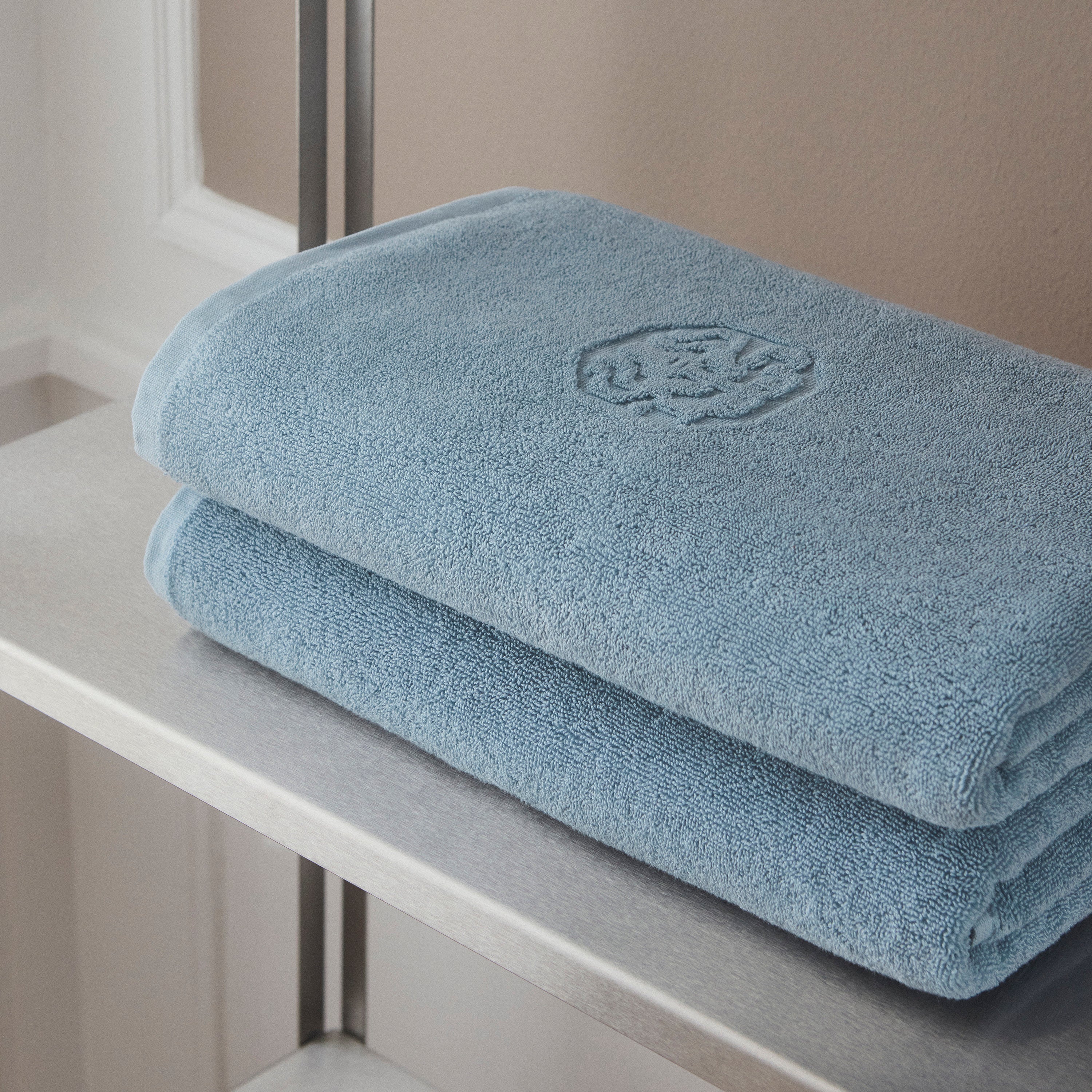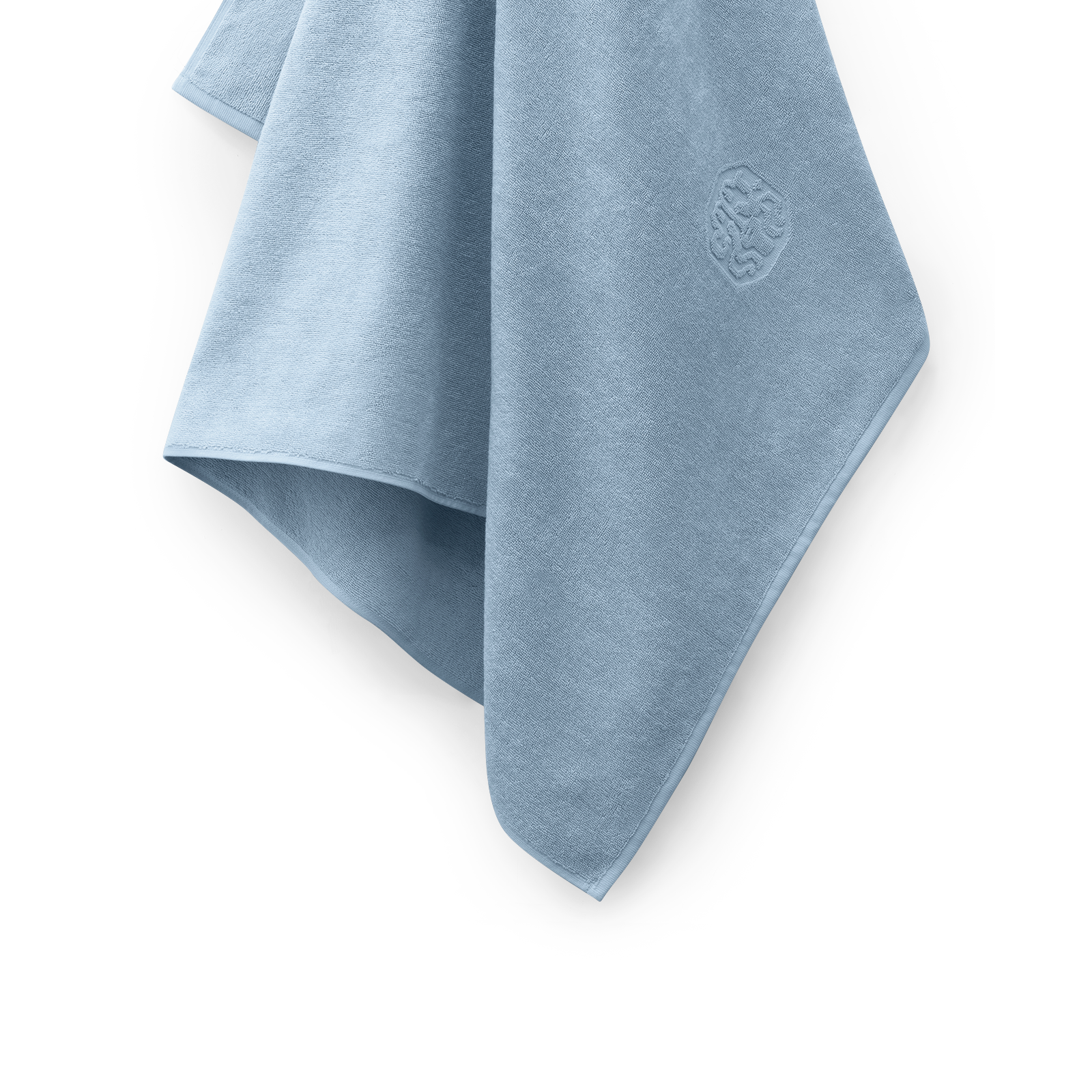 2 stk. store og bløde Damask Terry badelagner i farven Blue Hour –en smuk og tidløs, mellemblå farve. Som elegant detalje har badelagnet Georg Jensen Damasks ikoniske logo indvævet.