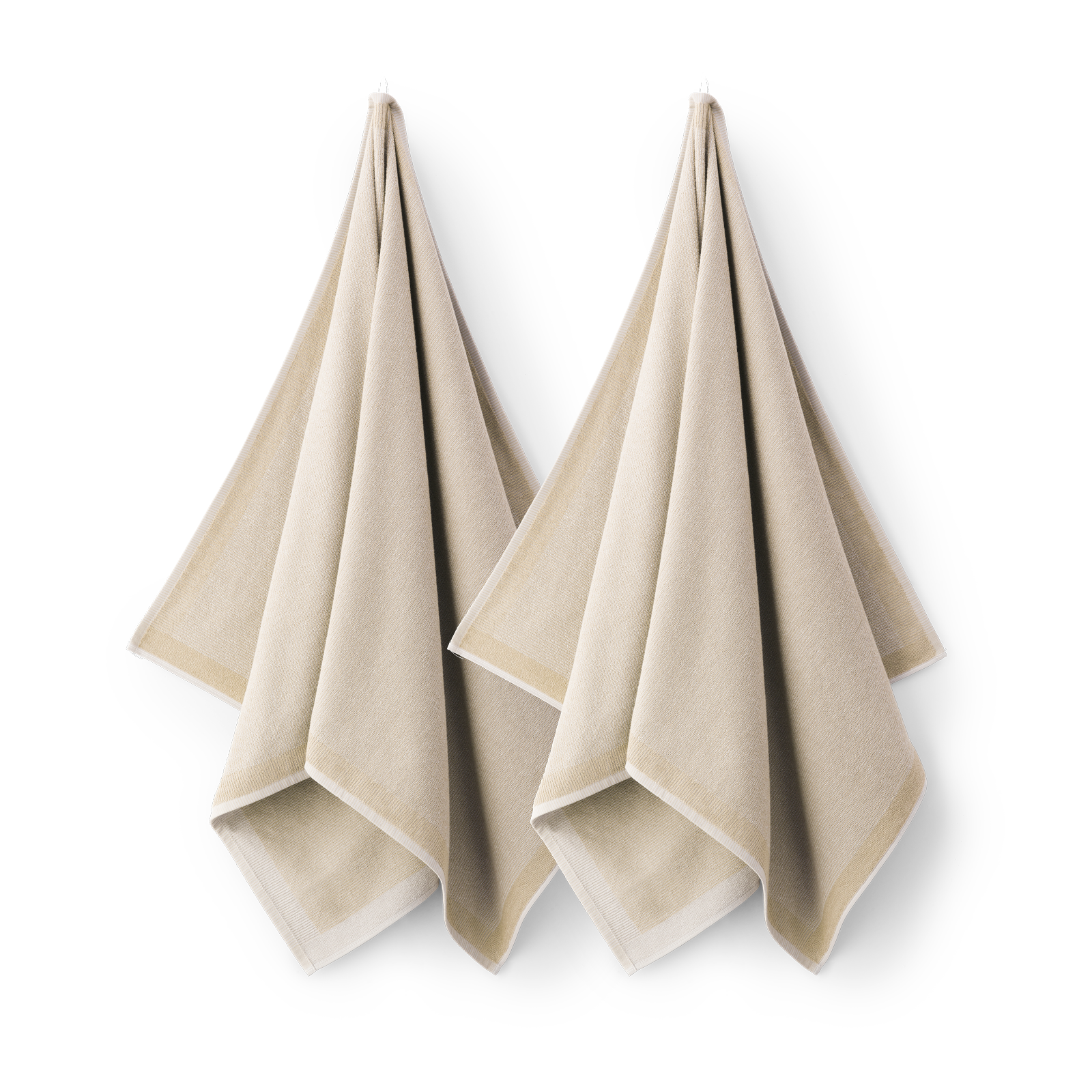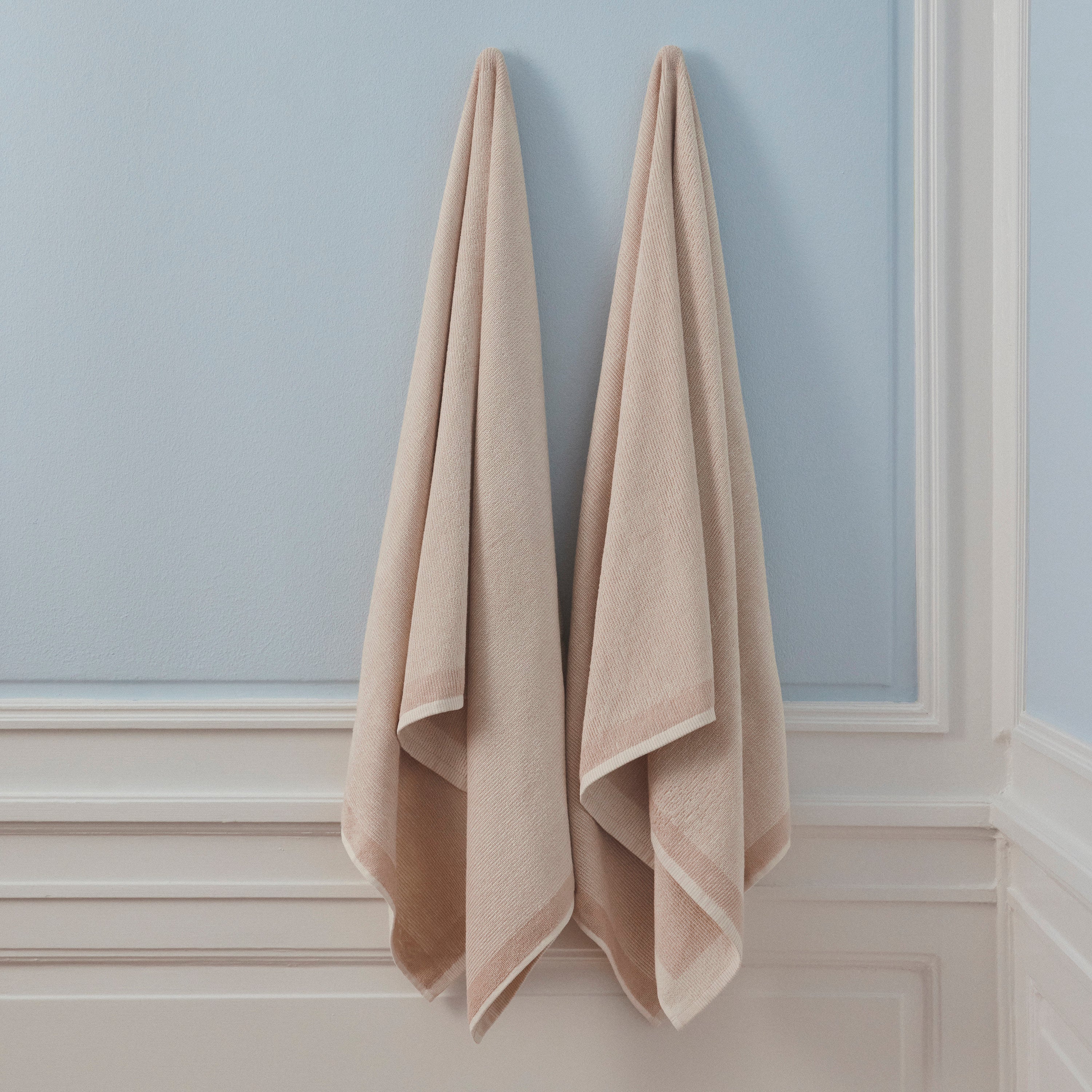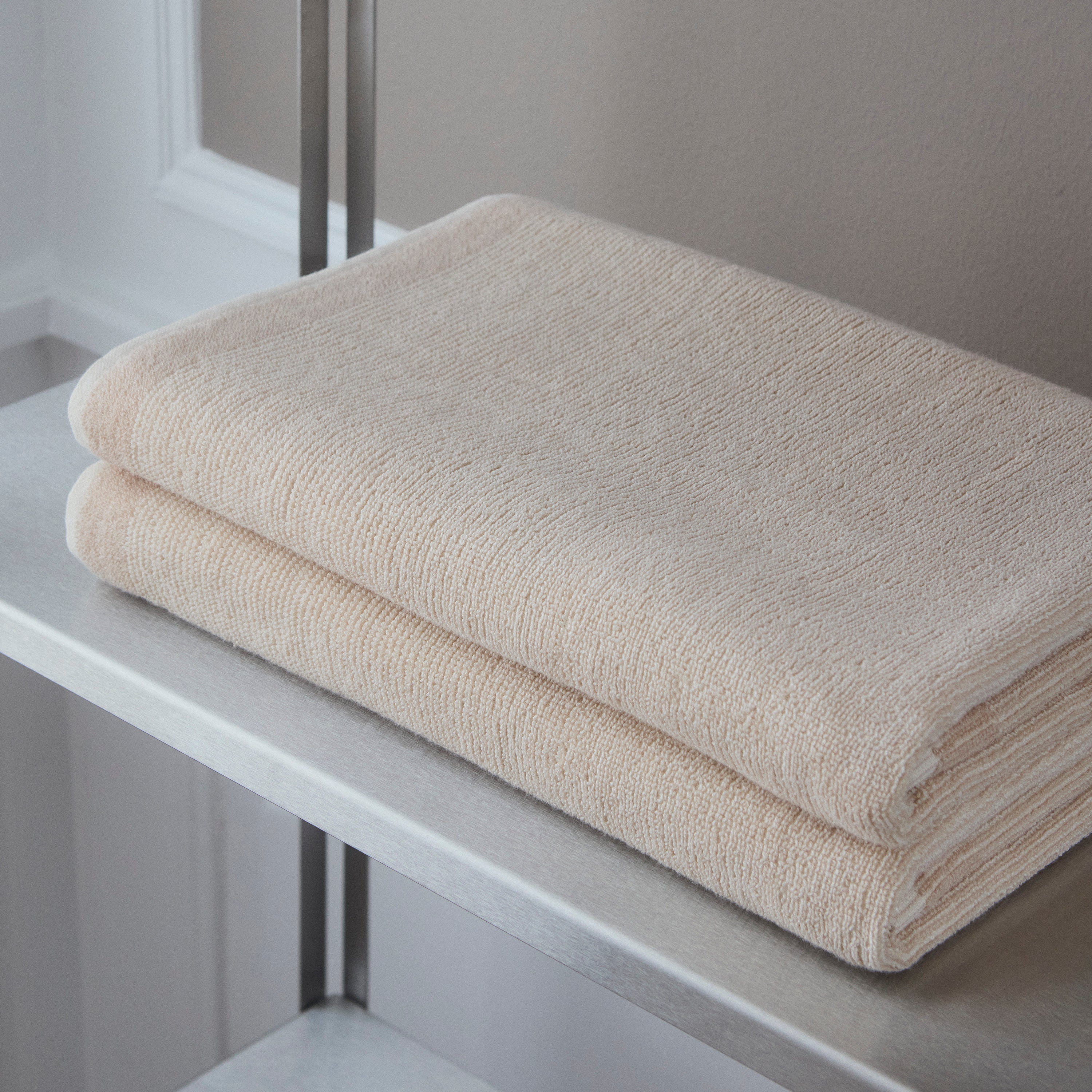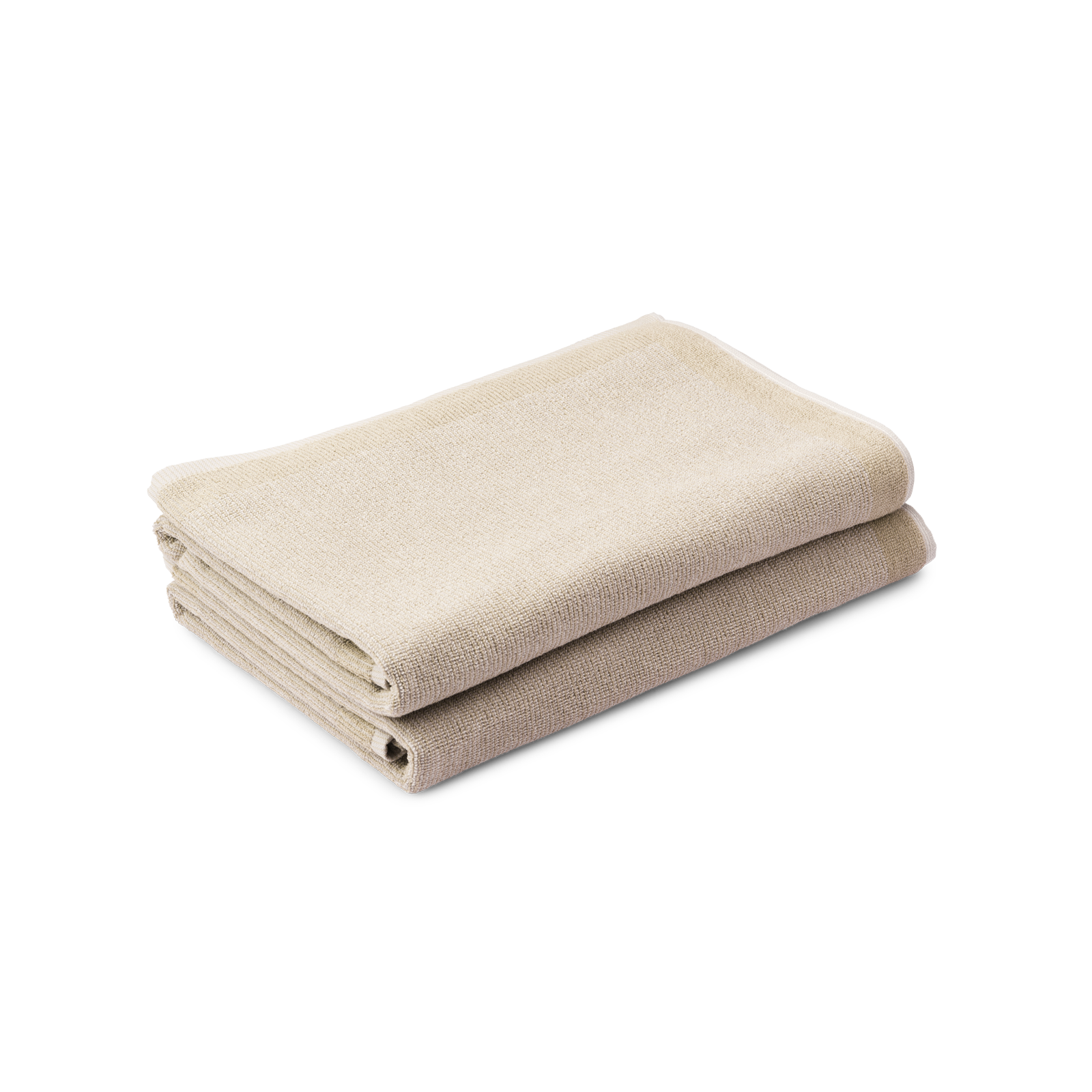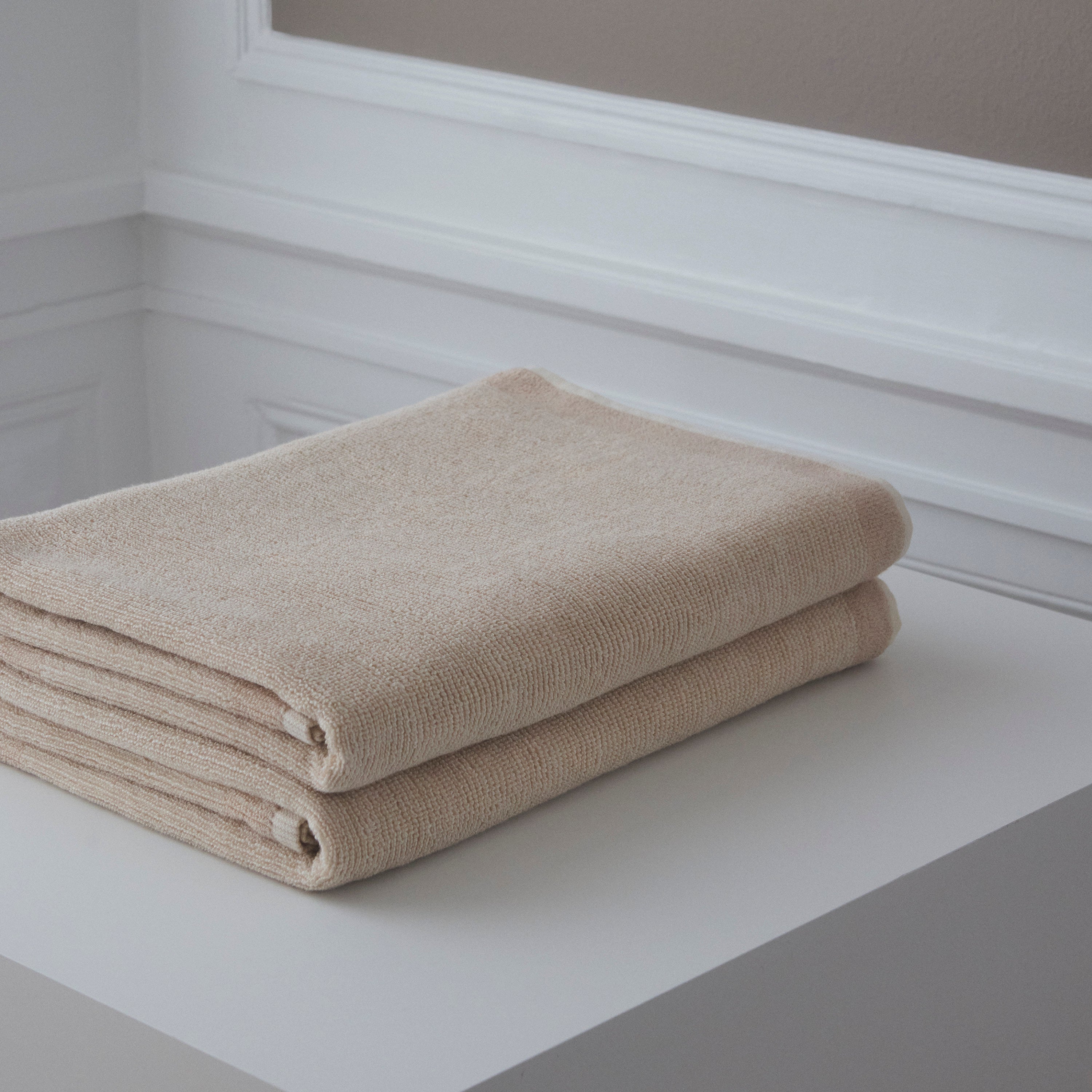 Solid badelagenet i 100 % bomuld har et enkelt udtryk med smalle striber og en elegant bort. Den raffinerede vævning gør, at badelagnet fylder mindre og er ideelt til rejsen eller sportstasken. Farven, Almond, er en lys og naturlig nuance af beige.