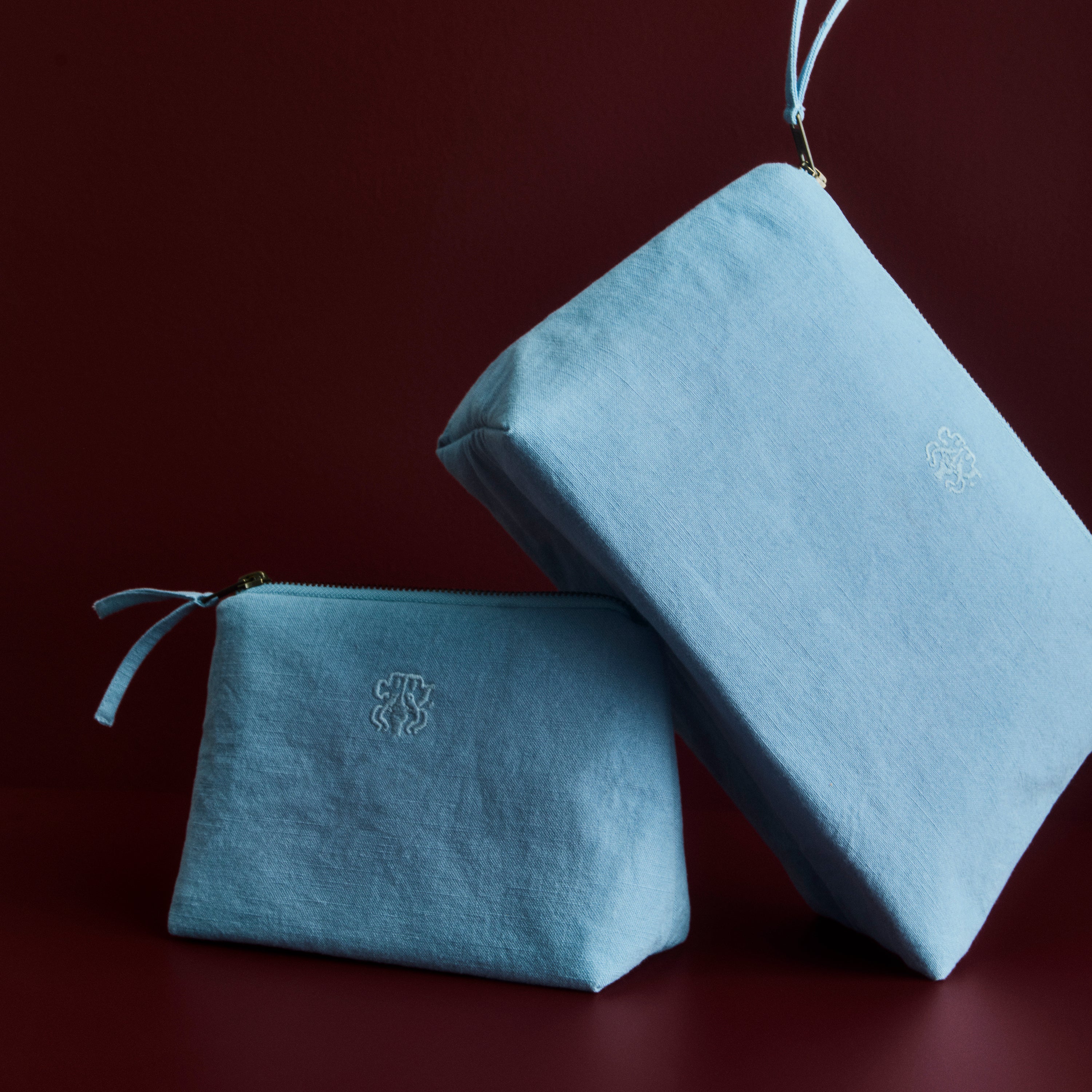 Pakke med 1 stk. All toilettaske og 1 stk. All kosmetikpung i farven Blue Hour – en smuk og tidløs mellemblå farve.