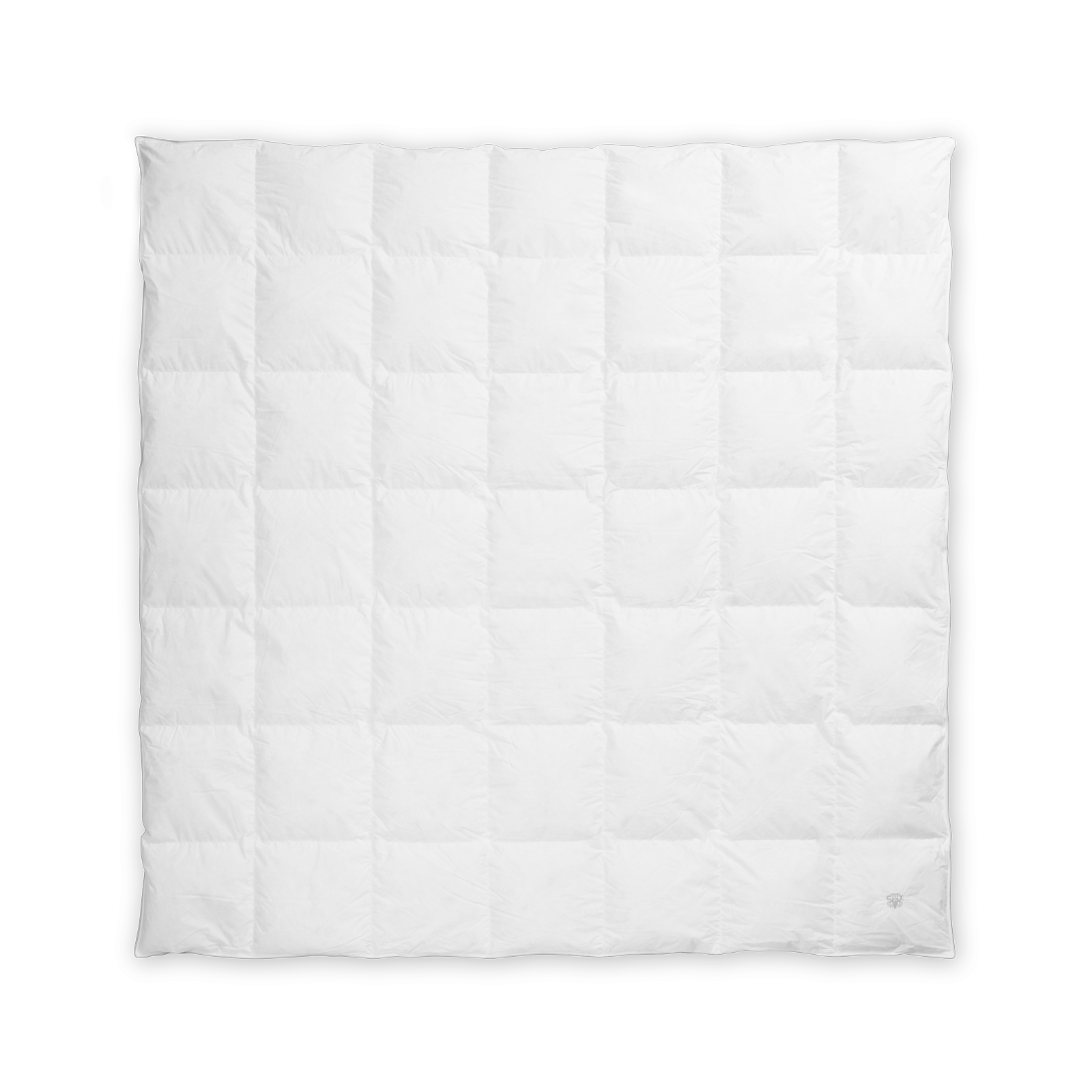 Andedunsdynen bærer Georg Jensen Damasks ikoniske logo som et diskret broderi – et symbol på kvalitet og omhyggelighed.