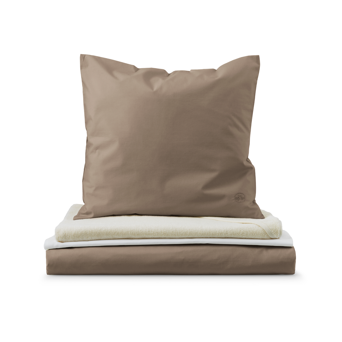Babypakken er ren forkælelse til de små. Det supima percalevævet sengesæt er udviklet, så det plejer nattesøvnen. Det er blødt, åndbart og vævet i 100% supima kæmmet bomuld. Babyhåndklædet er i blødt og tykt økologisk bomuldsfrotté. Det har et lille indvævet logo i hætten.