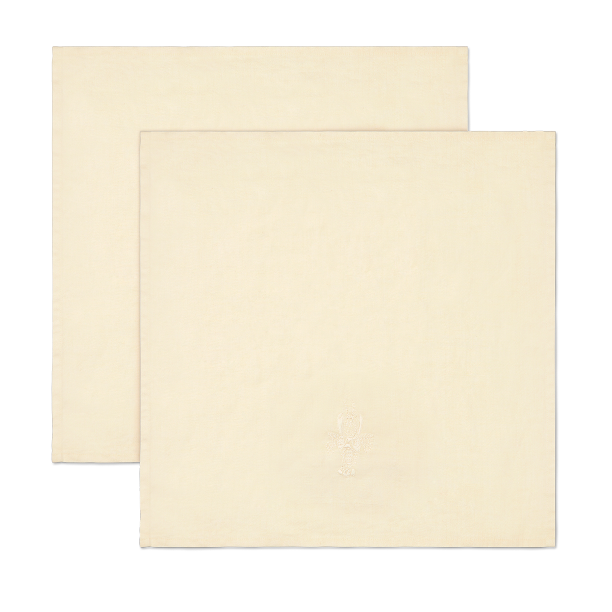 Stofservietten Banquet er vævet i 100 % hør og har et fint broderet motiv. Motiverne hummer og citron er hentet fra renæssancemåltidet og kommer på hver deres serviet samlet i et sæt. Servietterne fås i to farver og har en påsyet strop, så du kan hænge servietten på hjørnet af stolens ryg. Pale Yellow er en fin, lysegul nuance.