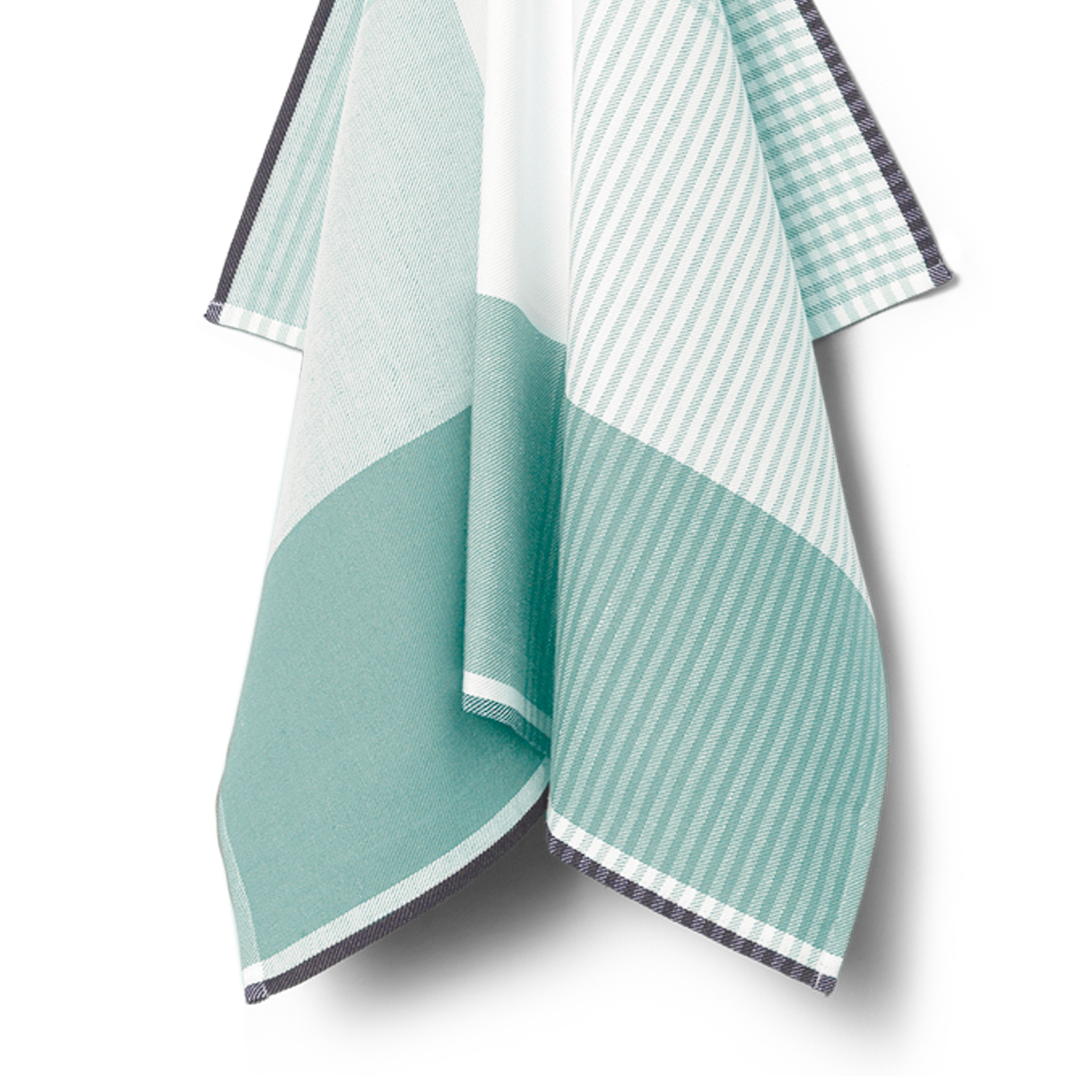 Becker 63 er et klassisk viskestykke med tern og skabt af felter i varierende bredder og farver. Det elegante og grafiske viskestykke er designet i 1963 af væver og designer John Becker. Det er vævet i en kombination af 50 % hør og 50 % bomuld, der giver det optimale tørreegenskaber. Den klare, blågrønne farve, Deep Glass, er inspireret af farven på råglas.