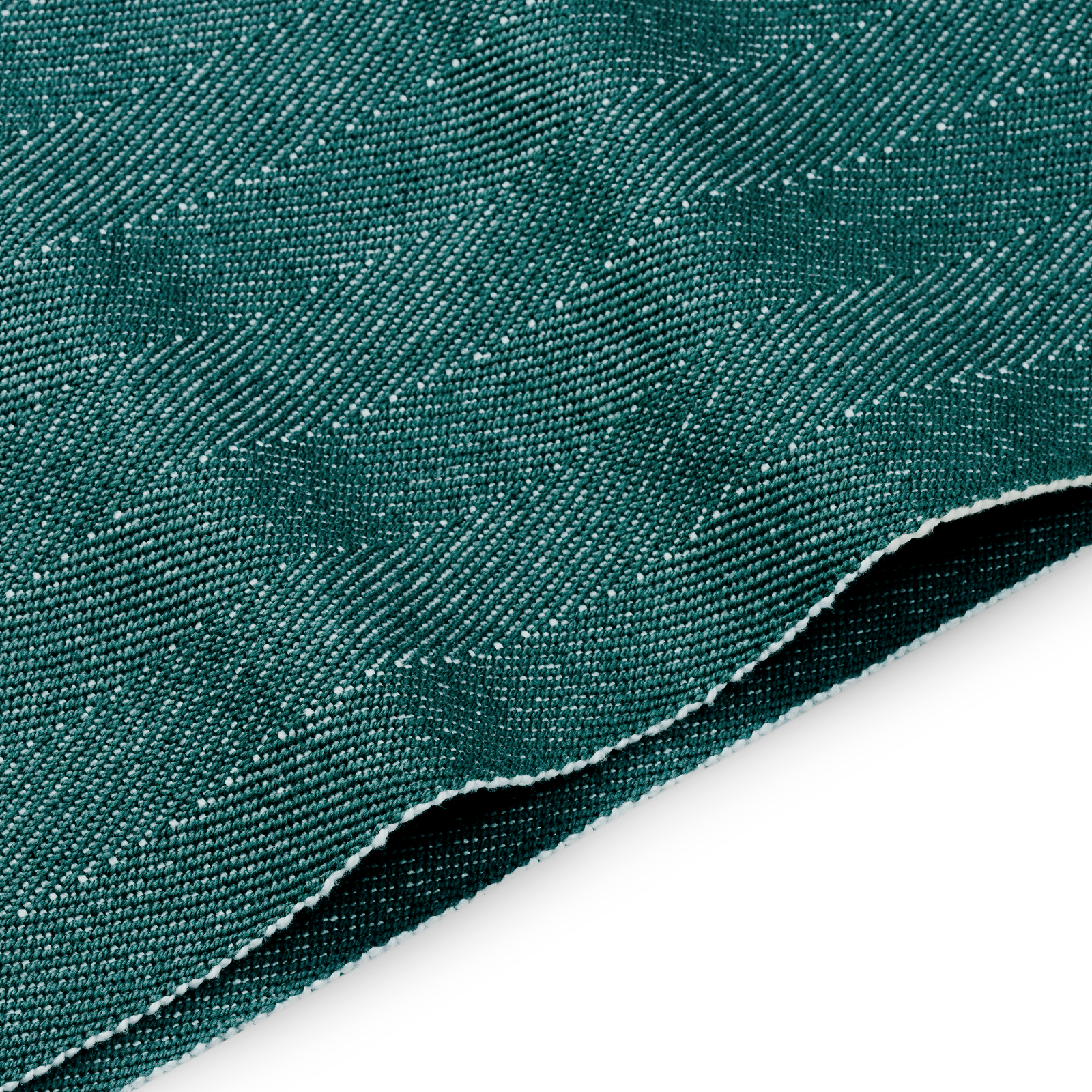 Dæk et elegant bord med Herringbone-bordløberen i Evergreen – en helt mørk og kølig grøn.