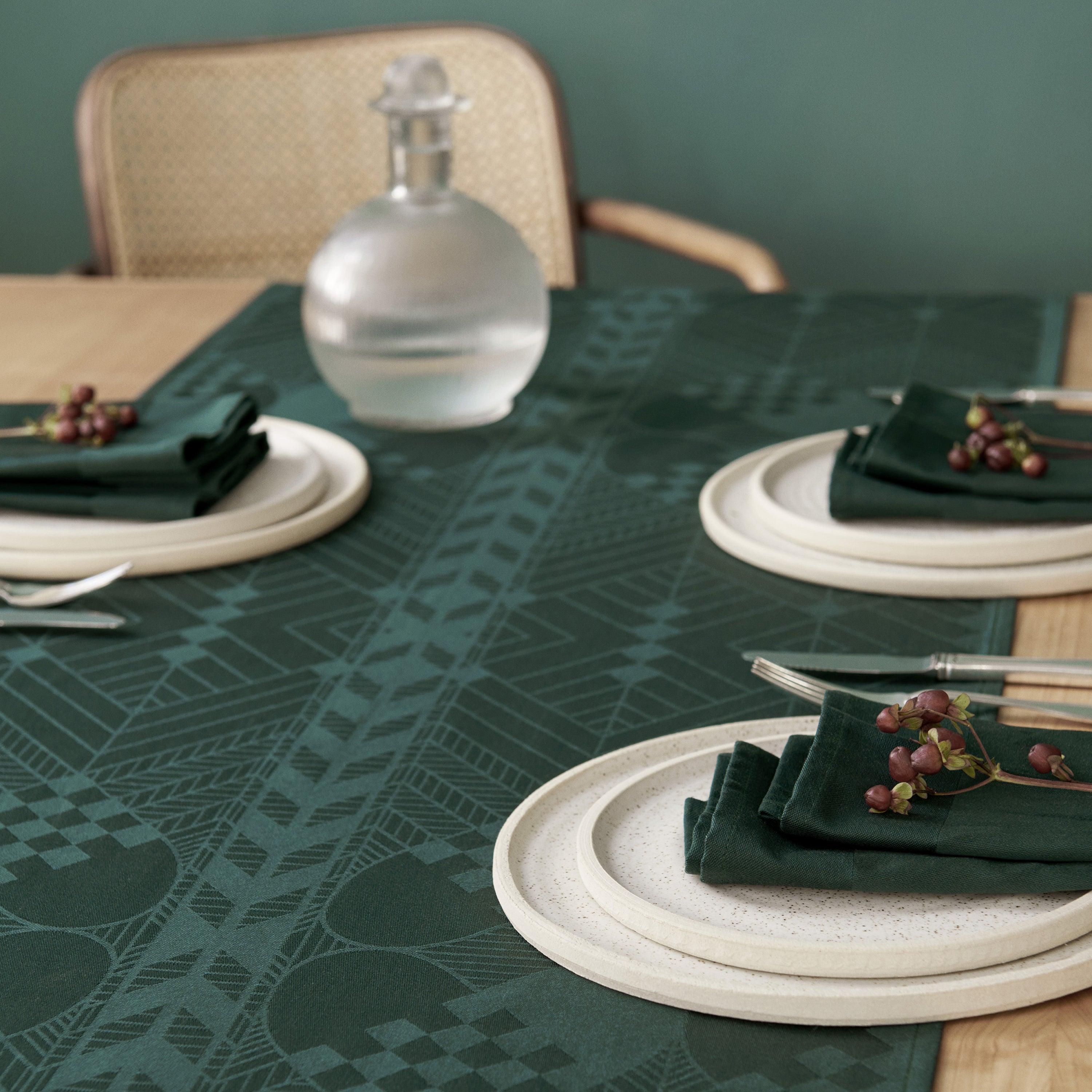 I den mørkegrønne farve København får løberen et særligt stemningsfuldt udtryk. Farven er inspireret af den grønne nuance på københavnske porte og bænke, og på julebordet skaber den et udtryk, der binder den traditionelle og den moderne jul sammen.