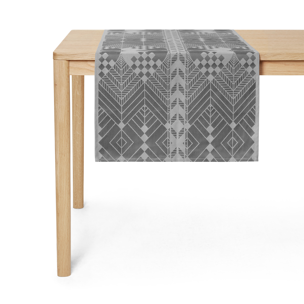I Winter Grey får bordløberen et særligt elegant udtryk, når vinterhimlens fine grå nuancer mødes i det ikoniske design. Farven danner et flot underlag for julens pynt i alskens udformninger og nuancer, fra naturmaterialer, snehvide toner og gylden messing til årets trendfarve. Matchende stofservietter fuldender udtrykket.
