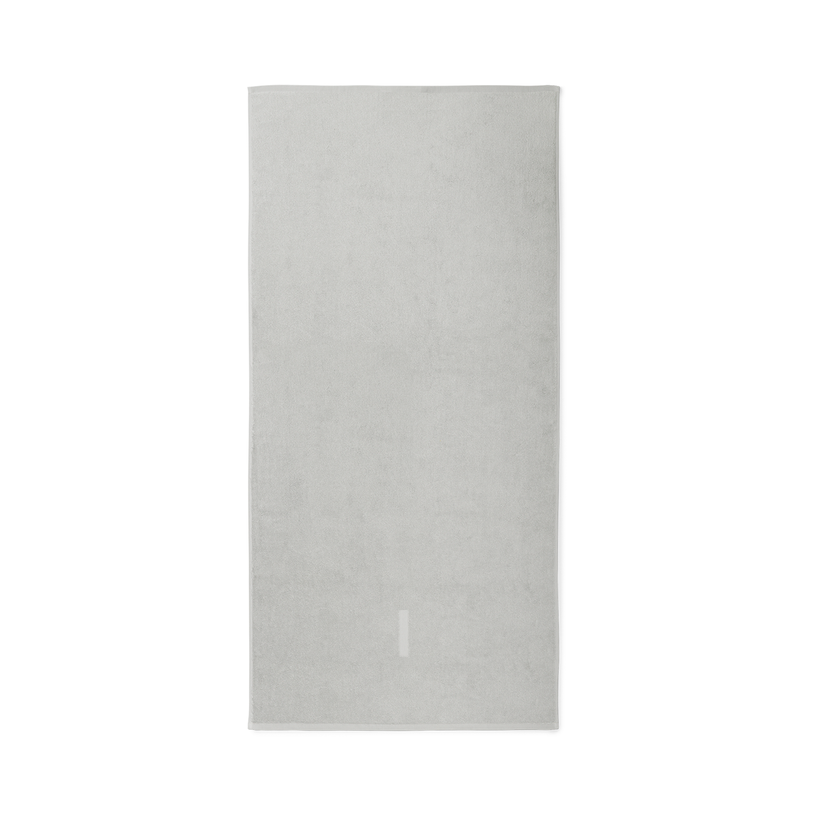 Damask Terry badehåndklæde med indvævet I bogstav. Badehåndklædet er jacquardvævet i 100 % dobbelttvundet, kæmmet bomuld med bogstav i relief. Det er både blødt, glansfuldt og slidstærkt. Den elegante farve, Platinum Grey, er en let og kølig nuance af grå.