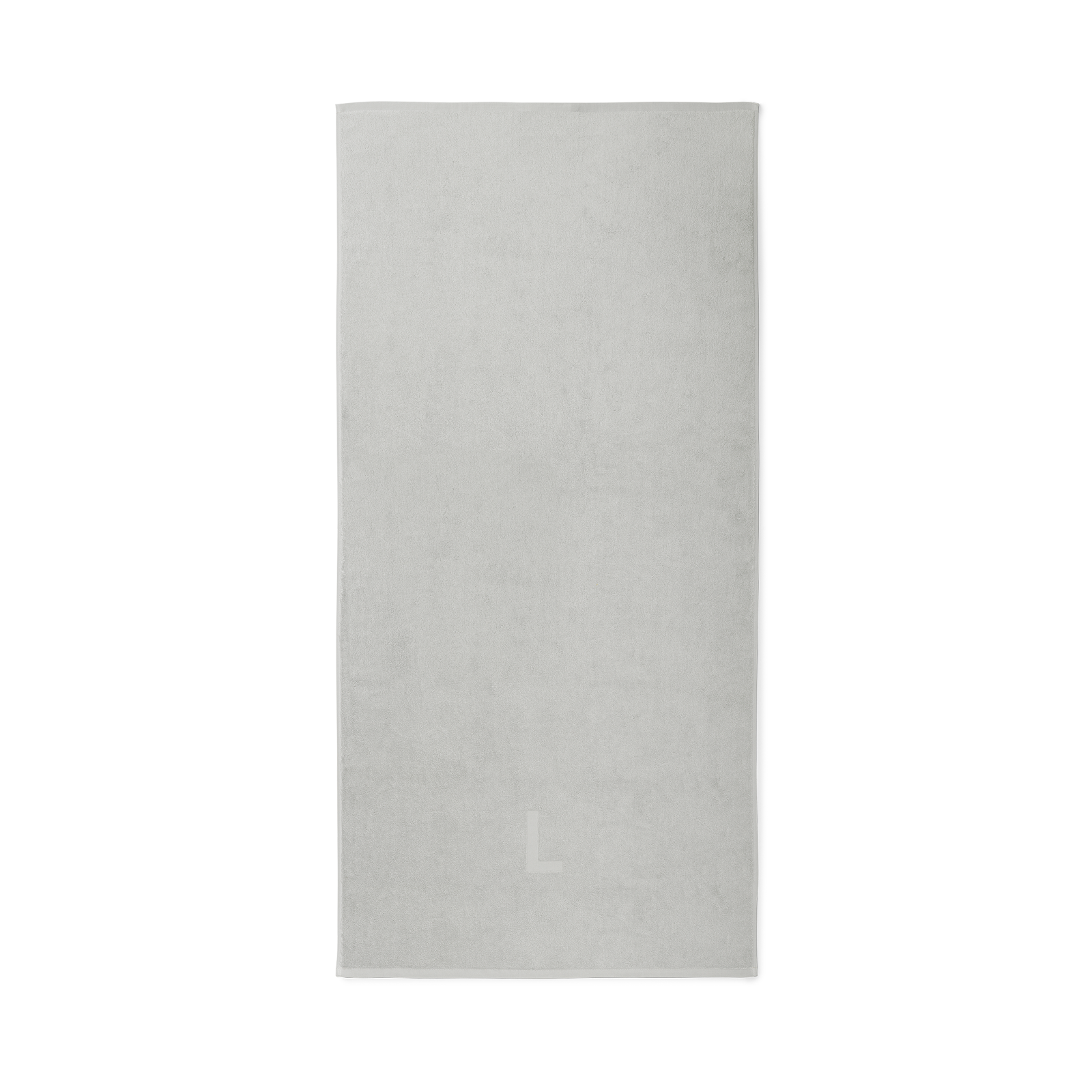 Damask Terry badehåndklæde med indvævet L bogstav. Badehåndklædet er jacquardvævet i 100 % dobbelttvundet, kæmmet bomuld med bogstav i relief. Det er både blødt, glansfuldt og slidstærkt. Den elegante farve, Platinum Grey, er en let og kølig nuance af grå.