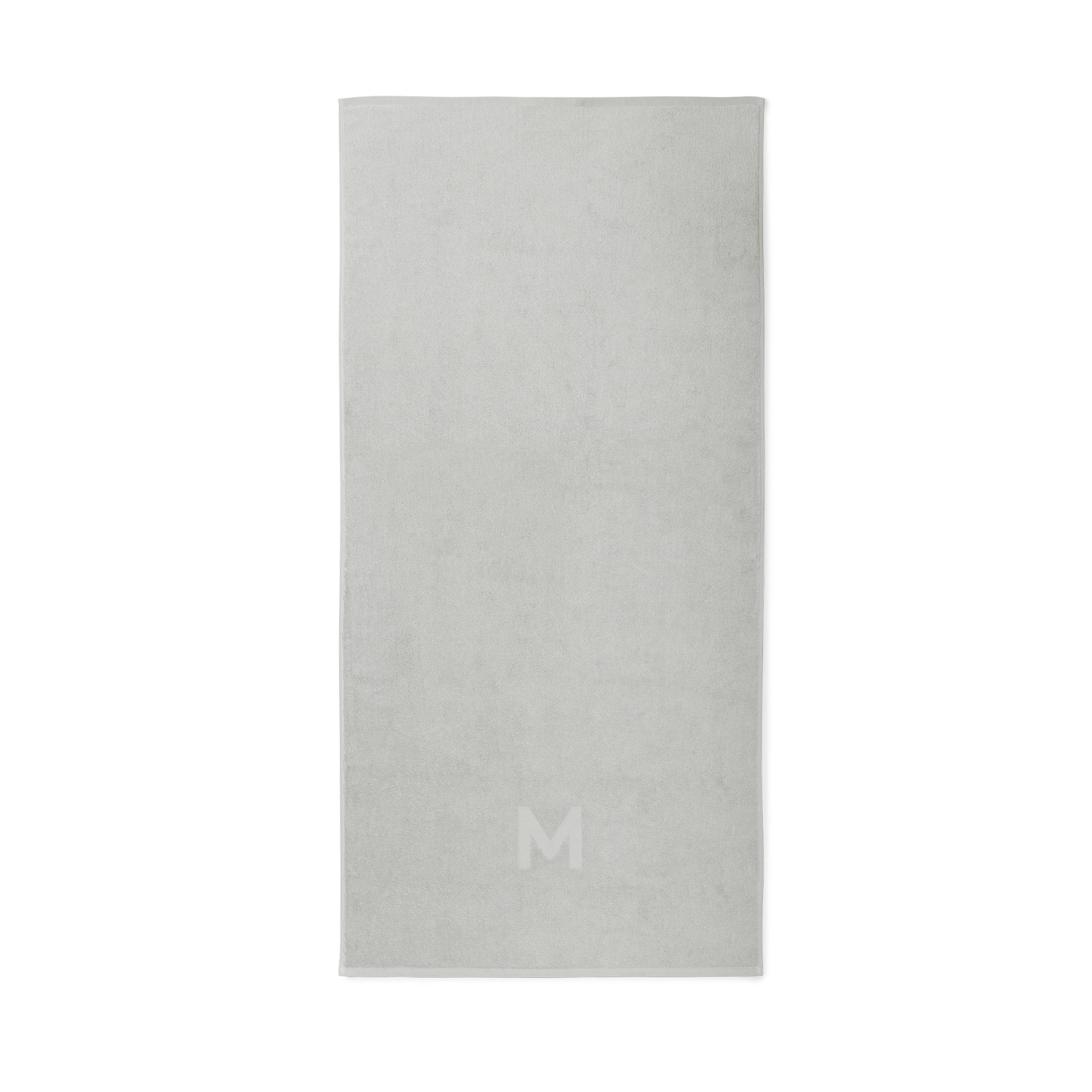 Damask Terry badehåndklæde med indvævet M bogstav. Badehåndklædet er jacquardvævet i 100 % dobbelttvundet, kæmmet bomuld med bogstav i relief. Det er både blødt, glansfuldt og slidstærkt. Den elegante farve, Platinum Grey, er en let og kølig nuance af grå.