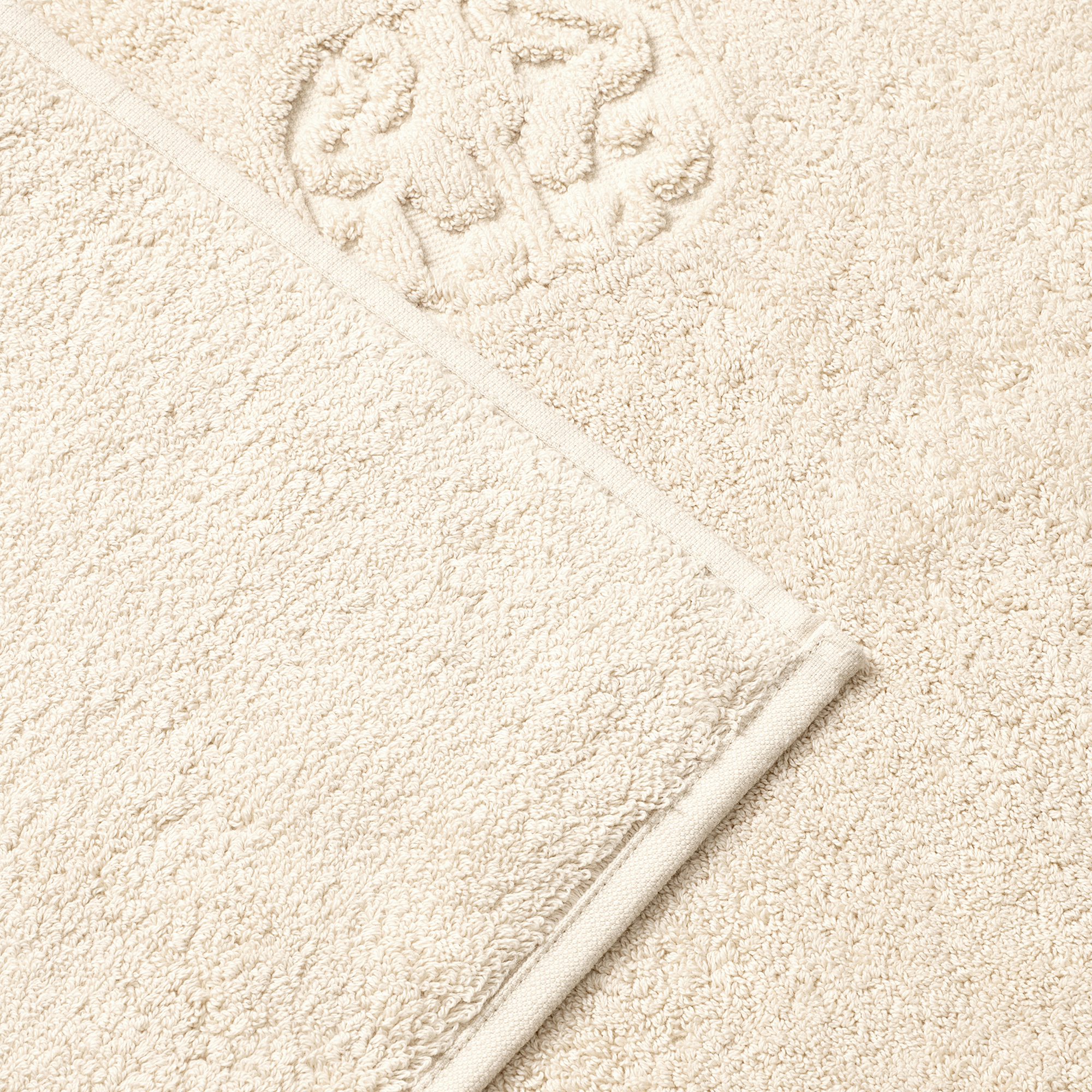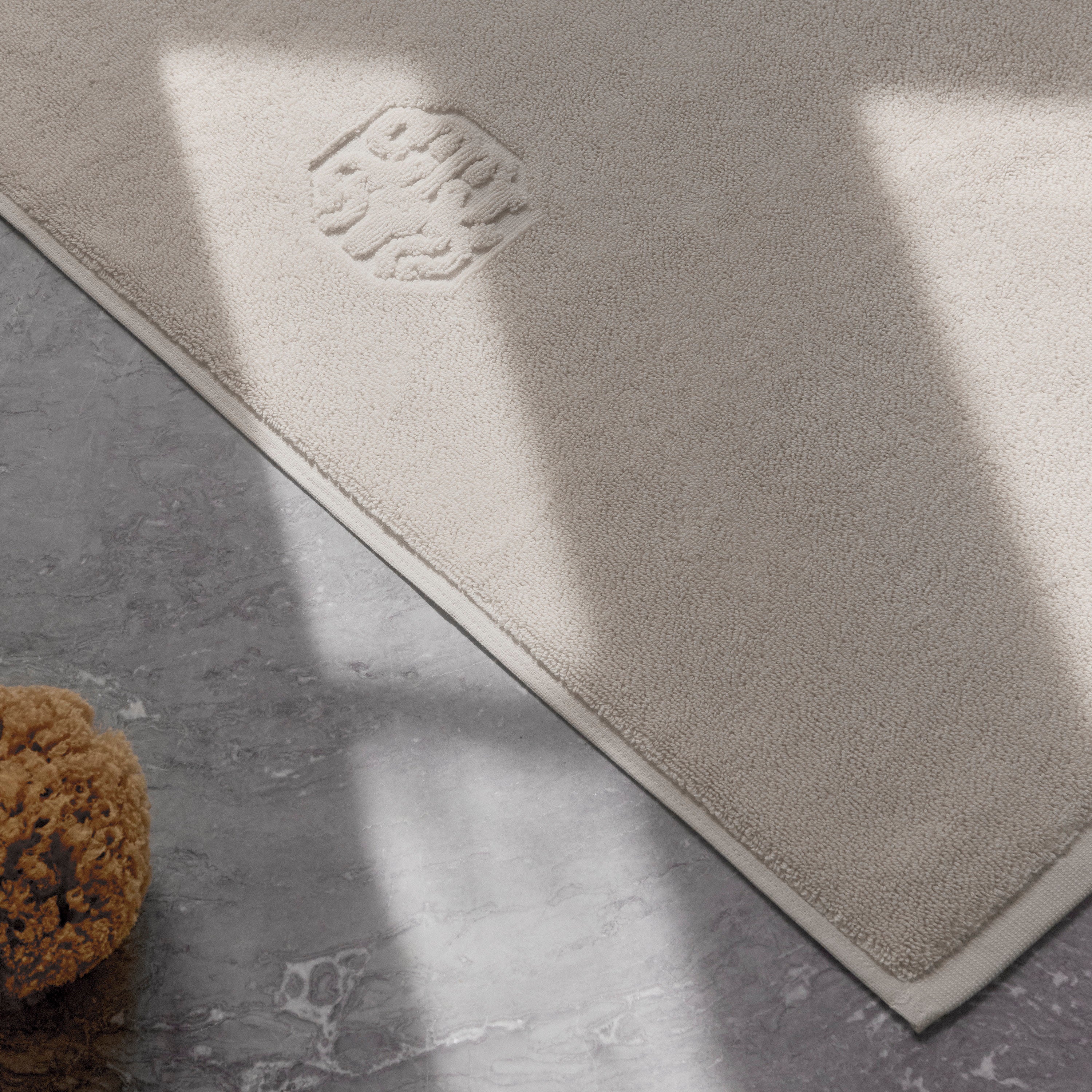 Damask Terry bademåtten har et enkelt udtryk med Georg Jensen Damasks ikoniske logo indvævet som elegant detalje. Archive Linen er en lys beige farve med referencer til linned fra vores århundreder gamle arkiv.