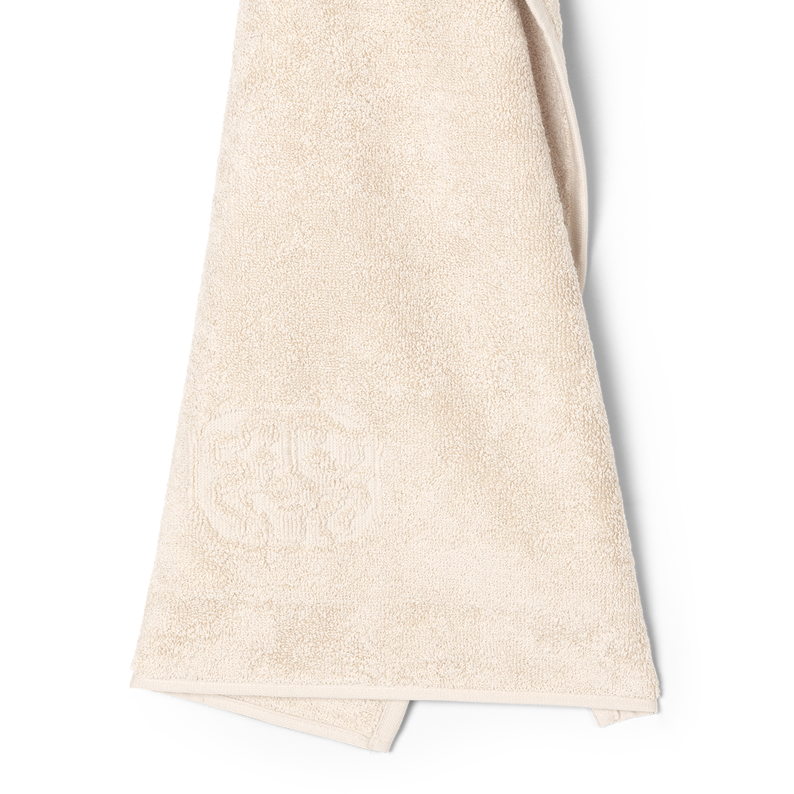 Damask Terry gæstehåndklædet har et enkelt udtryk med Georg Jensen Damasks ikoniske logo indvævet som elegant detalje. Archive Linen er en lys beige farve med referencer til linned fra vores århundreder gamle arkiv.