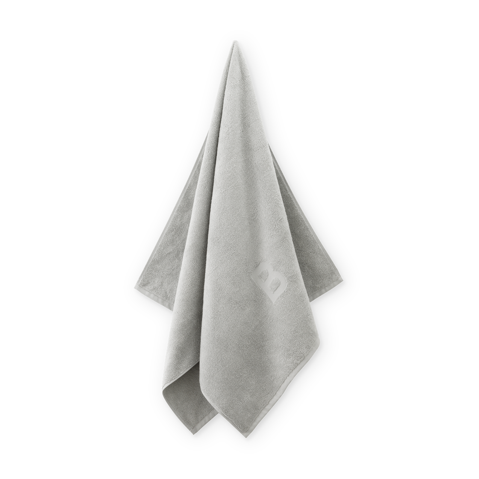 Damask Terry badehåndklæde med indvævet B bogstav. Badehåndklædet er jacquardvævet i 100 % dobbelttvundet, kæmmet bomuld med bogstav i relief. Det er både blødt, glansfuldt og slidstærkt. Den elegante farve, Platinum Grey, er en let og kølig nuance af grå.