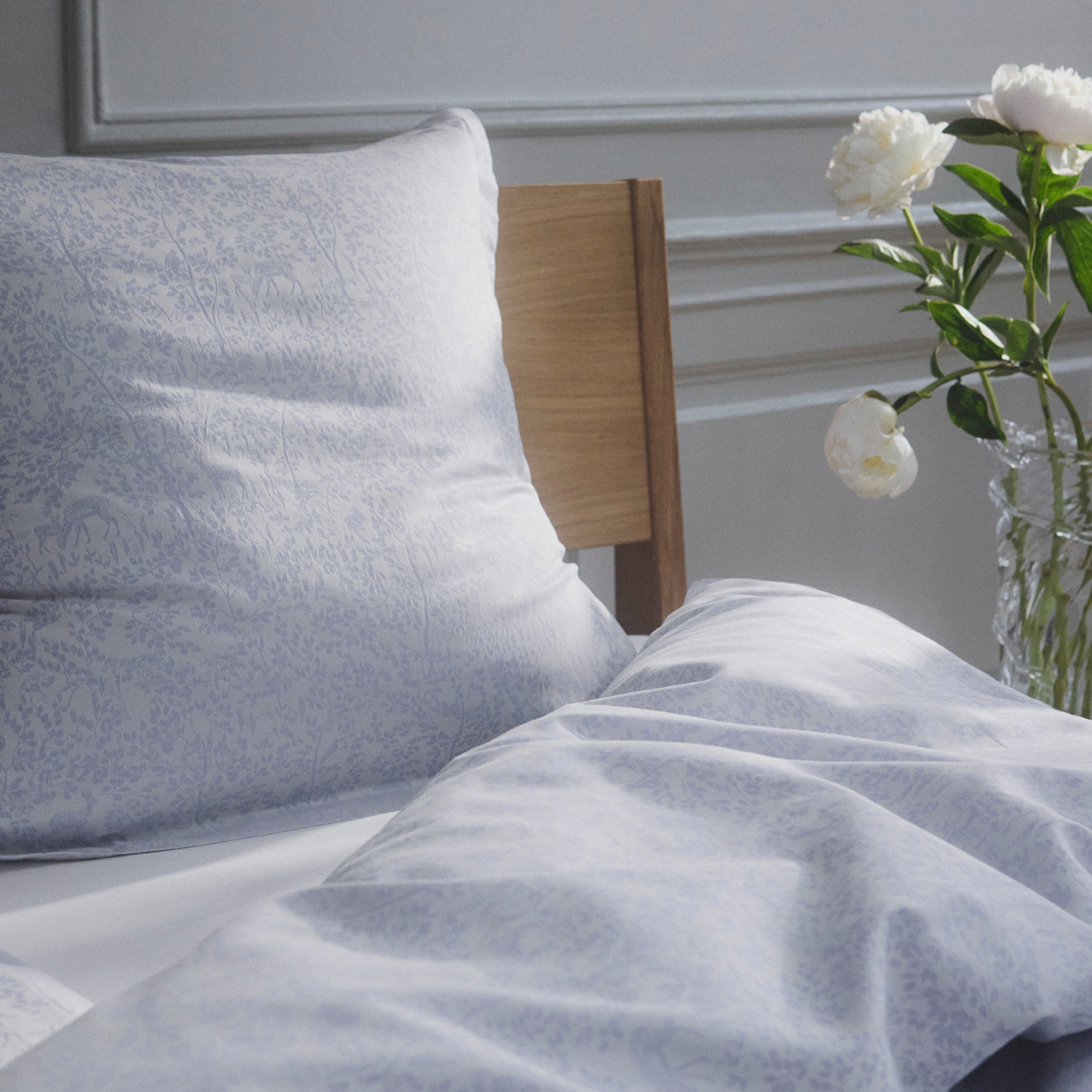Forest er et jacquardvævet sengesæt i 100 % økologisk bomuld. Sengesættet er i farven Clear Blue.