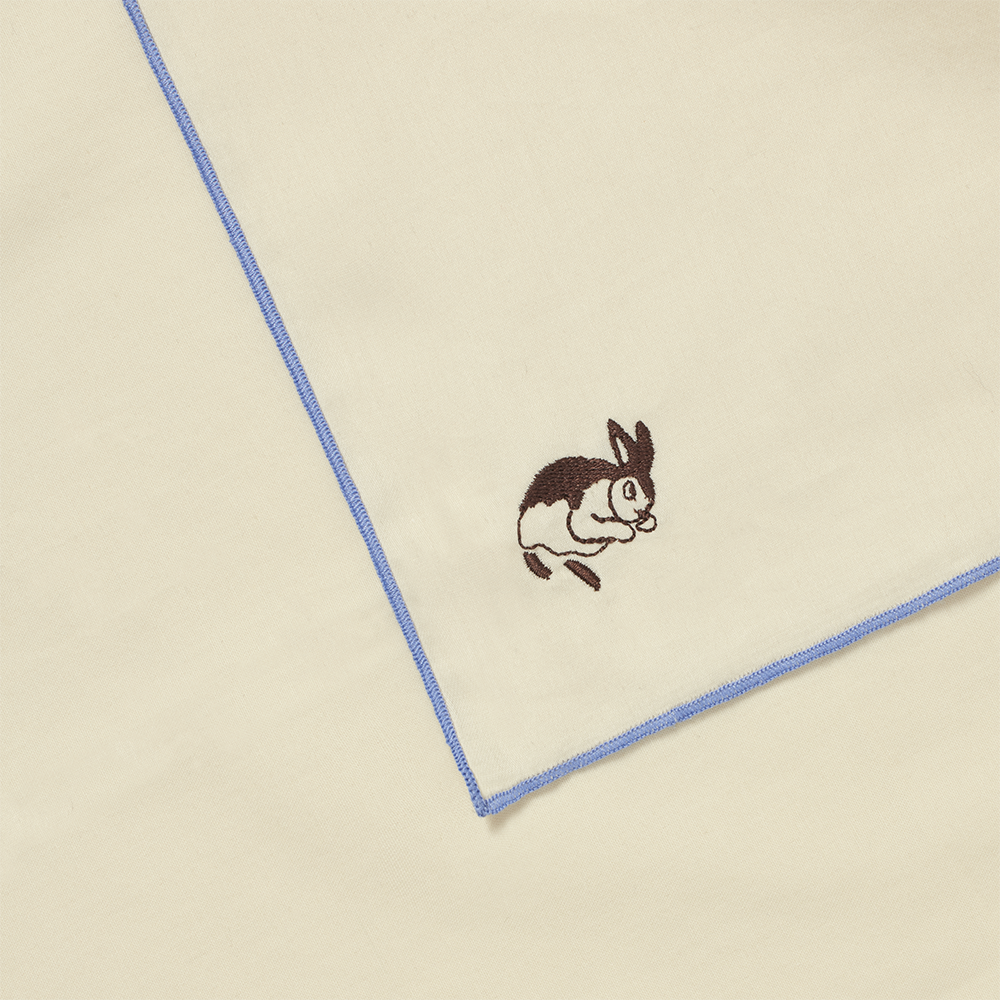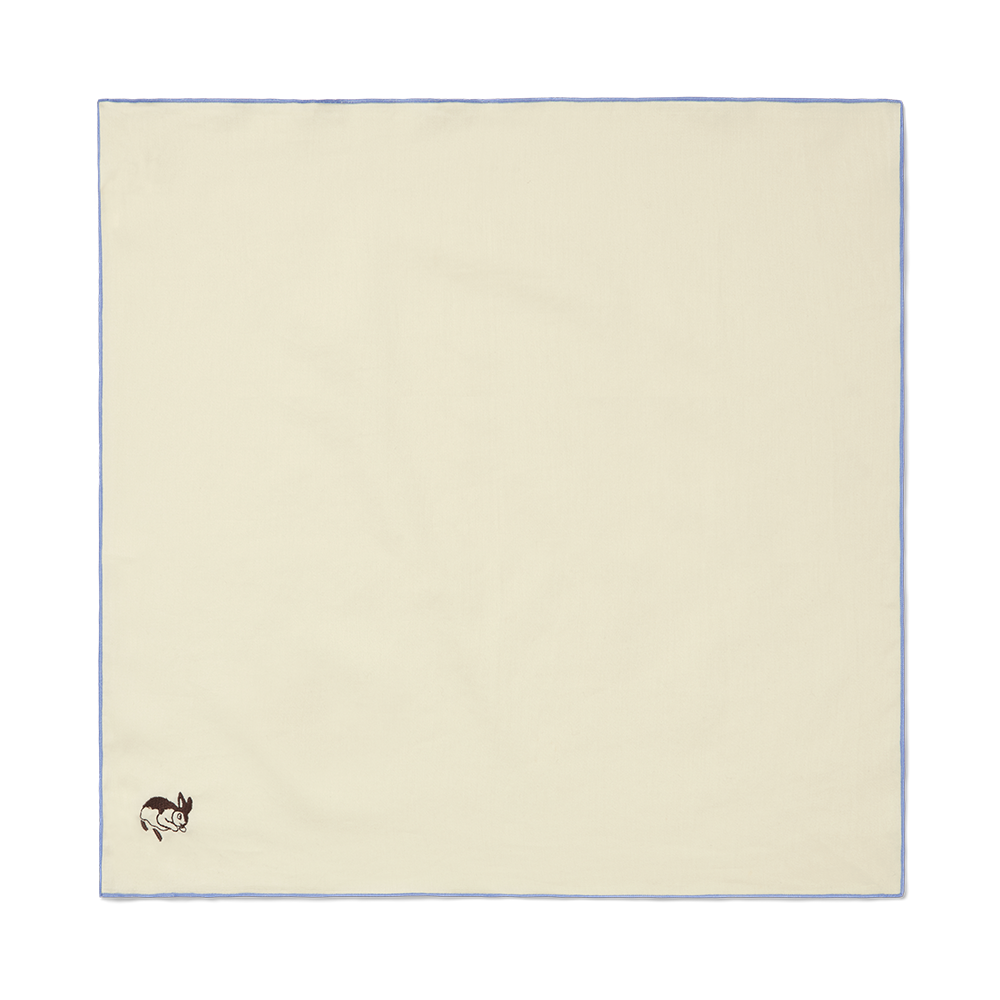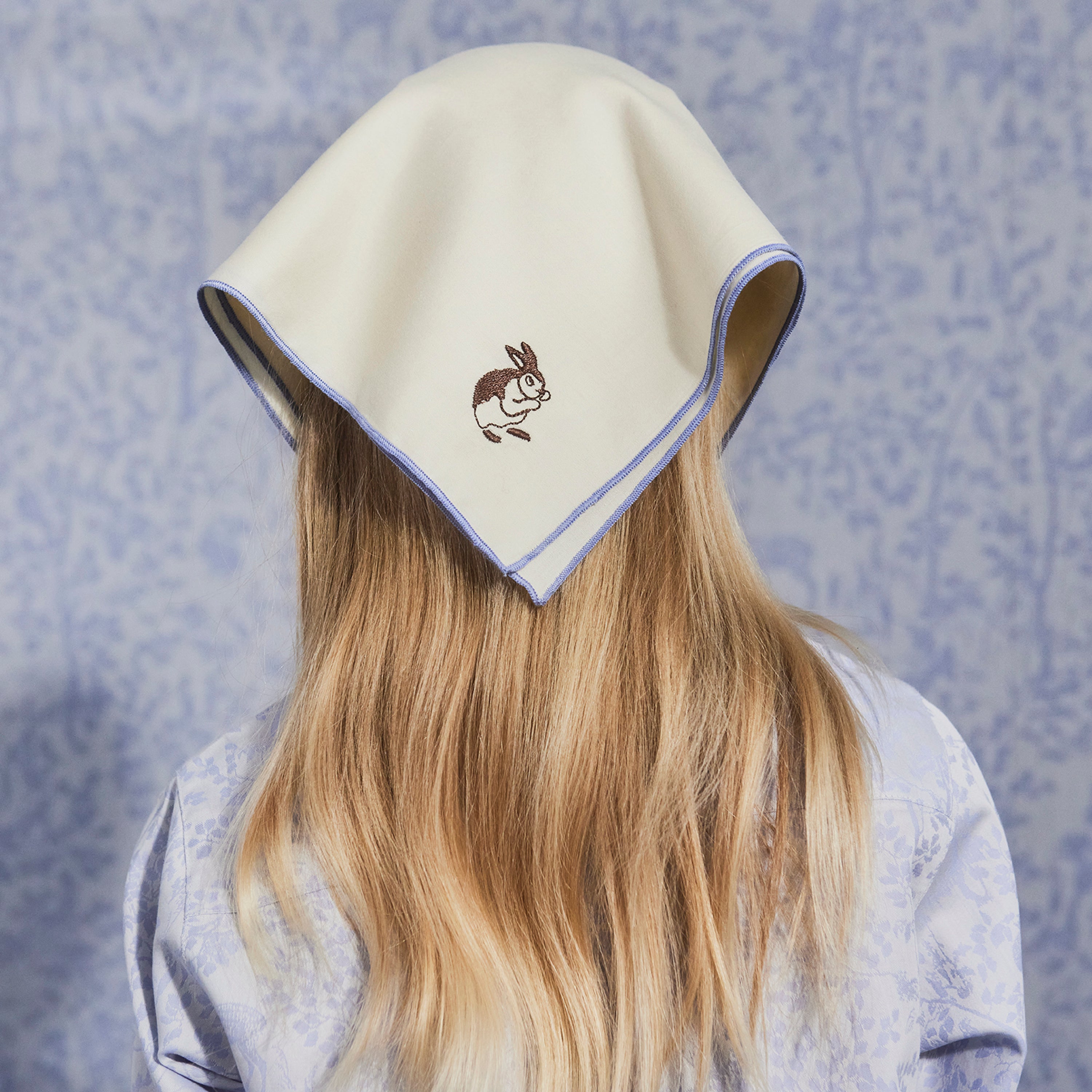 Tørklædet til børn er et særprodukt i børnekollektionen Forest, der henter sit motiv af kaniner, dådyr og skov fra en gobelin fra 1800-tallet fundet i Georg Jensen Damasks historiske arkiver.