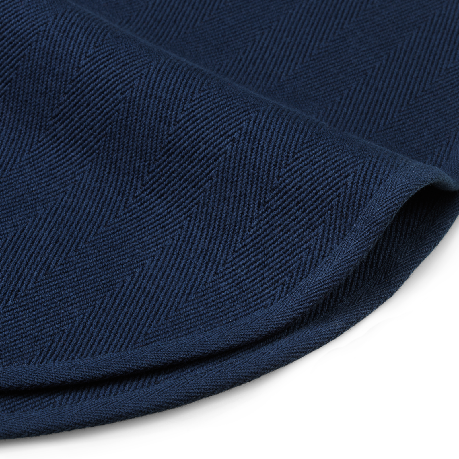 Dæk et elegant bord med de runde Herringbone-dækkeservietter i Dark Blue. Dækkeservietterne er vævet i 100 % kraftig bomuld. Vævemetoden giver det karakteristiske sildebensmønster og de kraftige garner får dækkeservietterne til at ligge tungt på bordet. De har et lille broderet logo i samme nuance som vævningen.