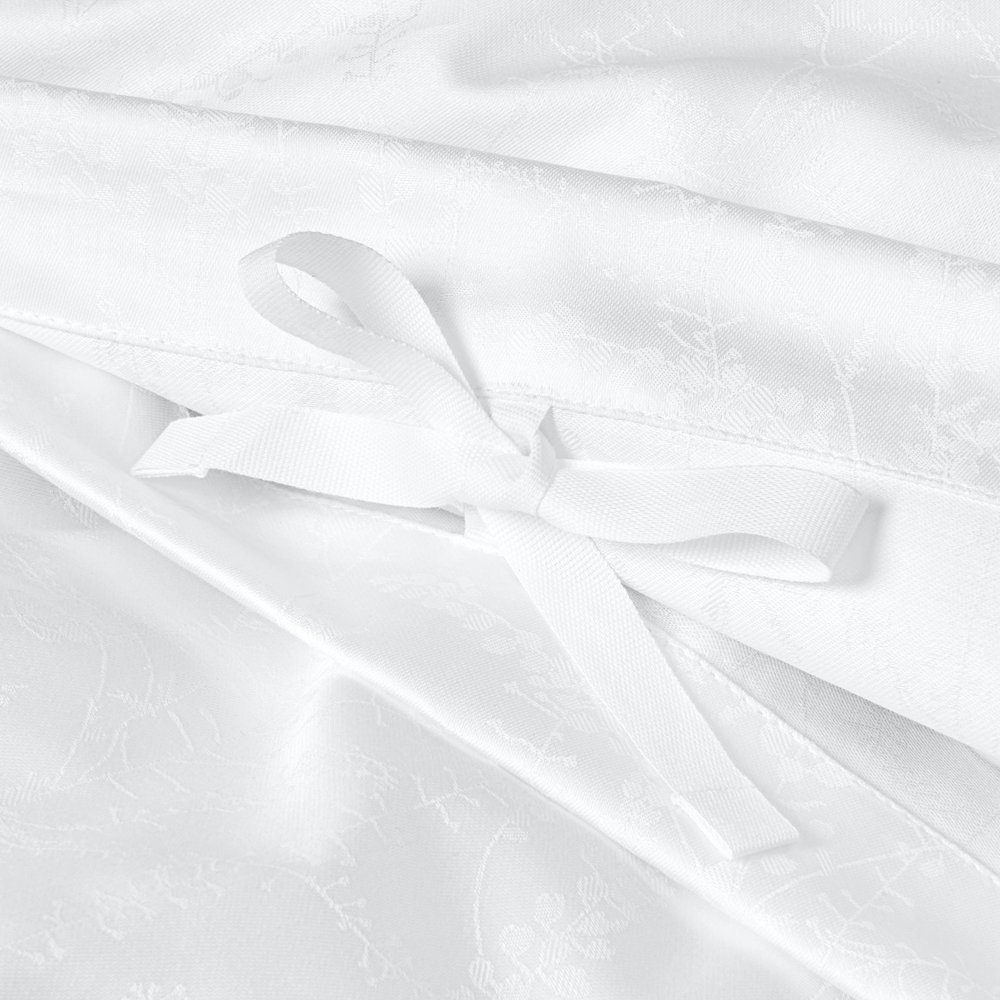 Den klassiske hvide farve udgør et yndefuldt lærred for mønstrets bløde kurver og organiske former, som vil klæde soveværelset til enhver tid.