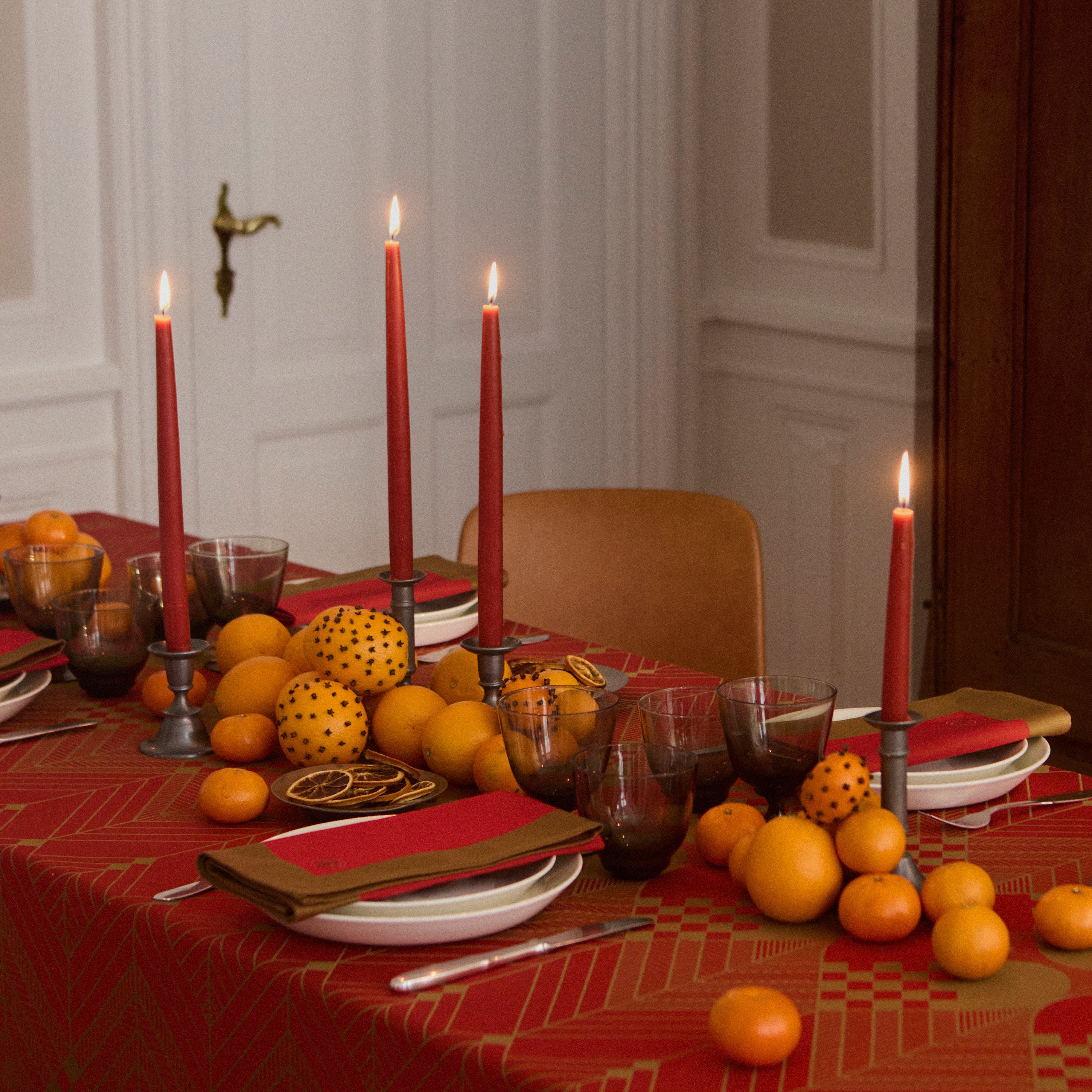 Den helt klassiske farvekombination i julerød og guld har en særlig plads i hjertet hos mange og har været i vores kollektion lige siden lanceringen i 1975. I al sin smukke enkelhed værner Juledugen i den oprindelige farvekombination om traditionerne. Matchende stofservietter fuldender udtrykket.