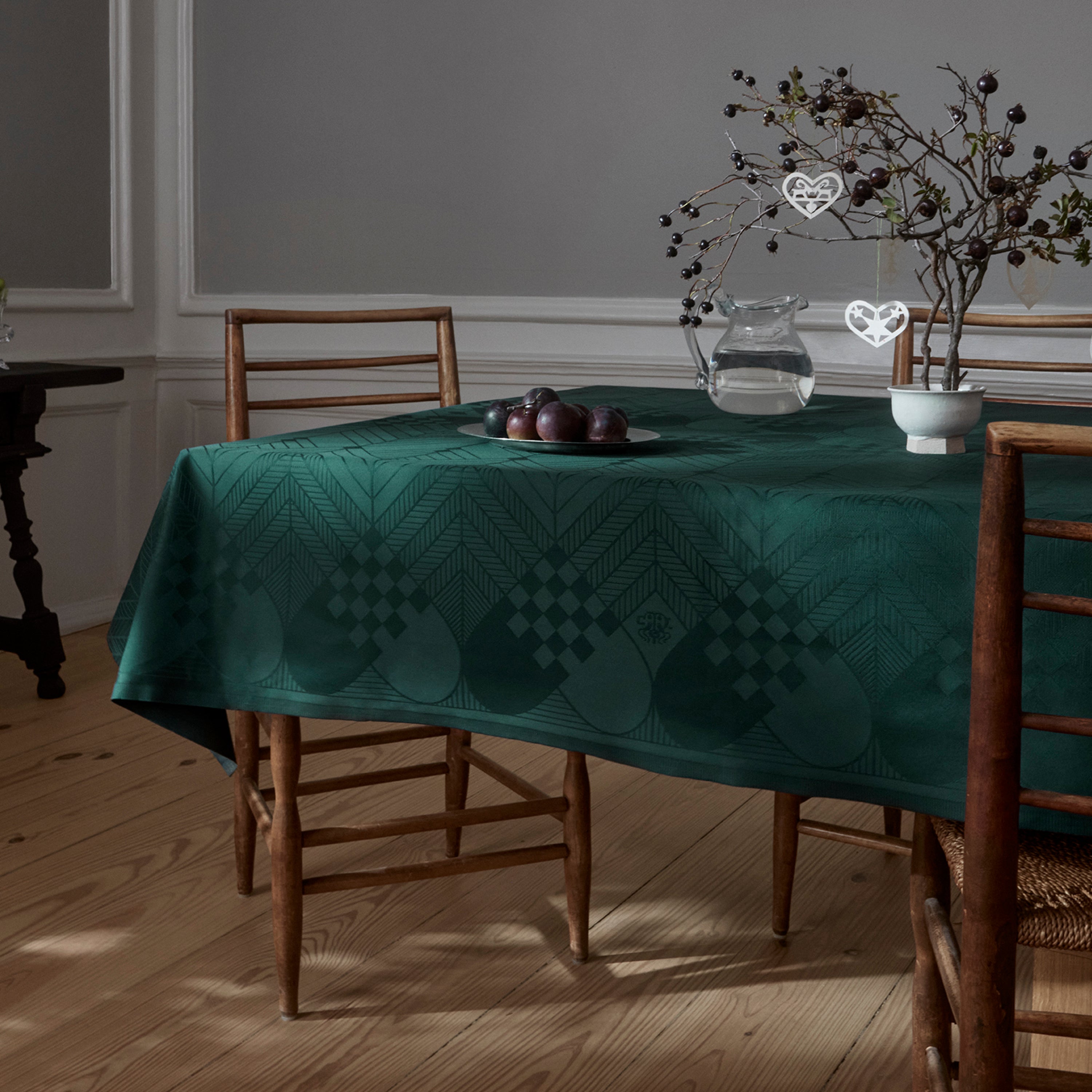I mange familier er vores ikoniske juledug blevet en uundværlig del af højtiden. Juledugen med det fine motiv af julehjerter er et nostalgisk signaturdesign i damaskkollektionen. Det er en eksklusiv dug, man vokser op med og giver videre til næste generation.