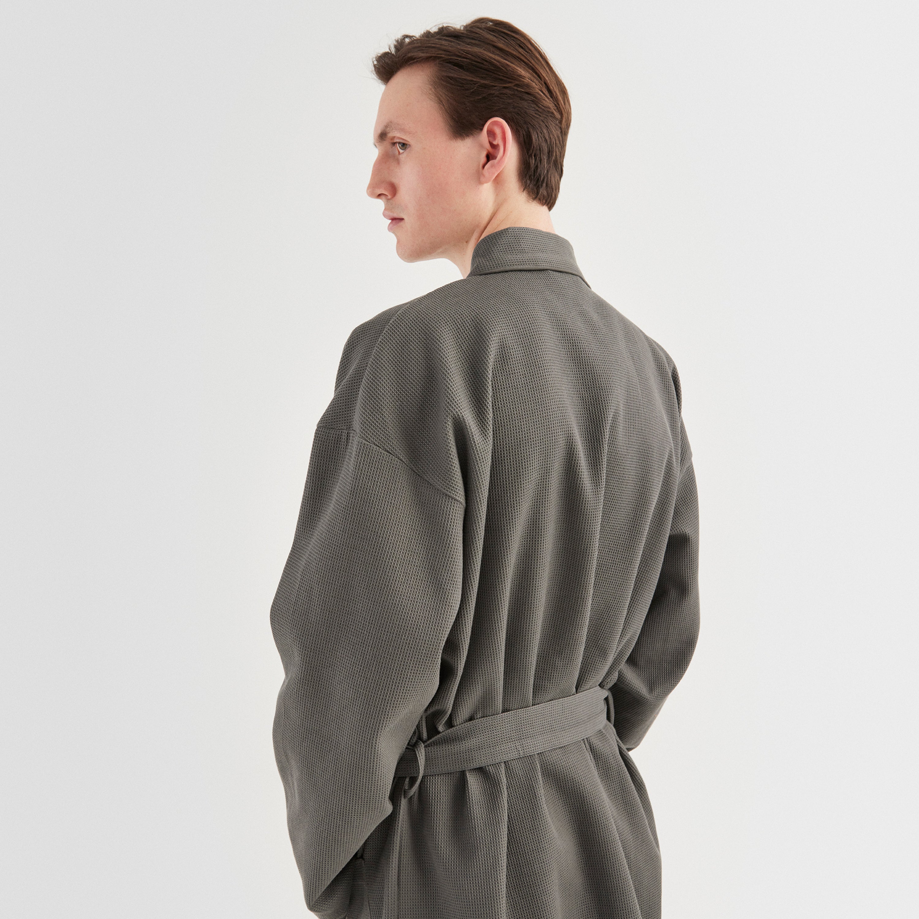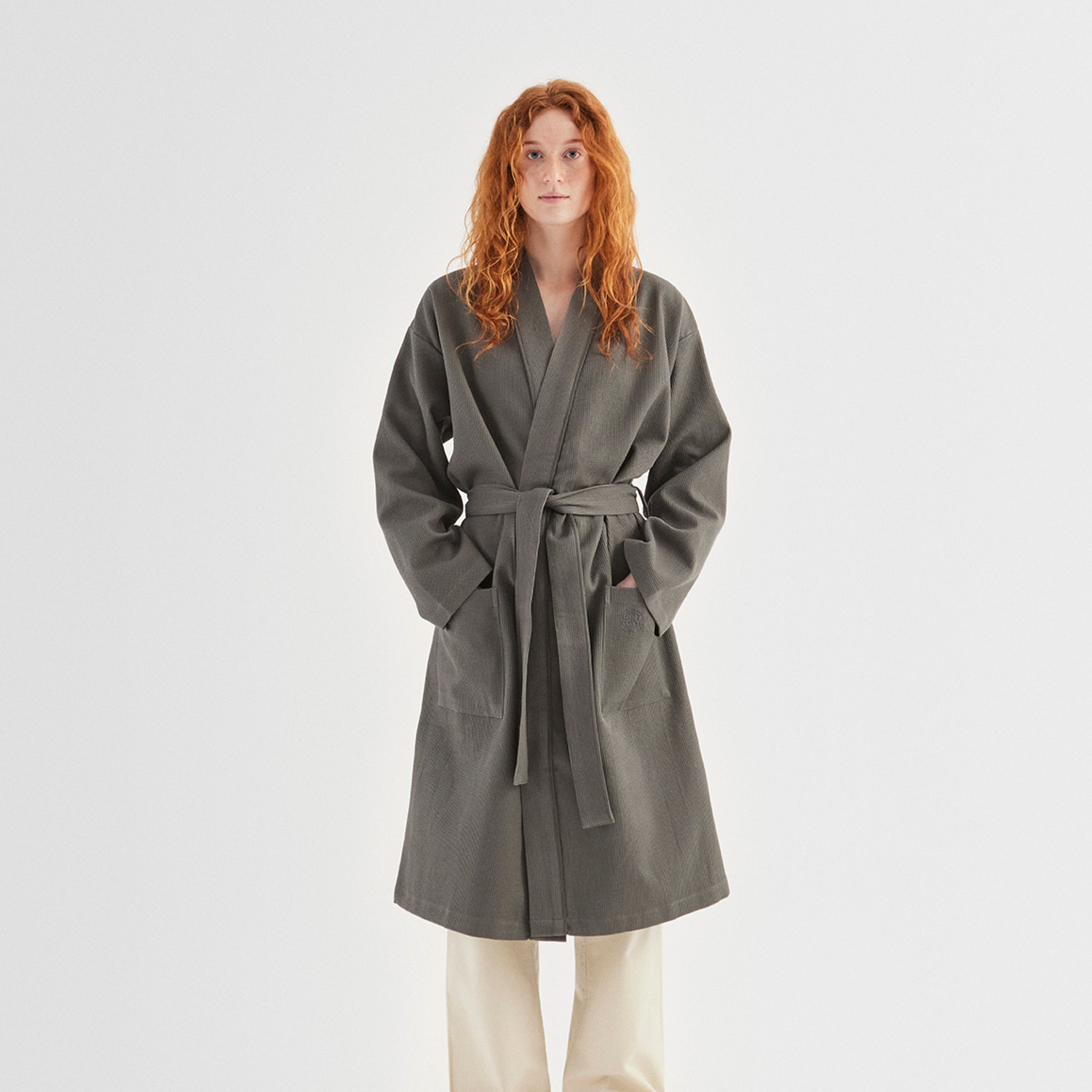 I den smukke gråsorte skiferfarve er den vaffelvævede Kimono+ et raffineret bud på en tidløs morgenkåbe. Lækker, varm og ganske uundværlig på kølige dage.