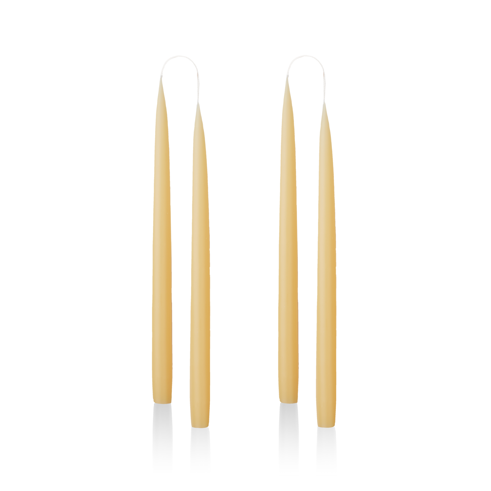 Smukke lange lys i en mild gul farve. Lysene har et behageligt, harmonisk udtryk, der gør dem til elegante indslag på bordet eller i vindueskarmen.