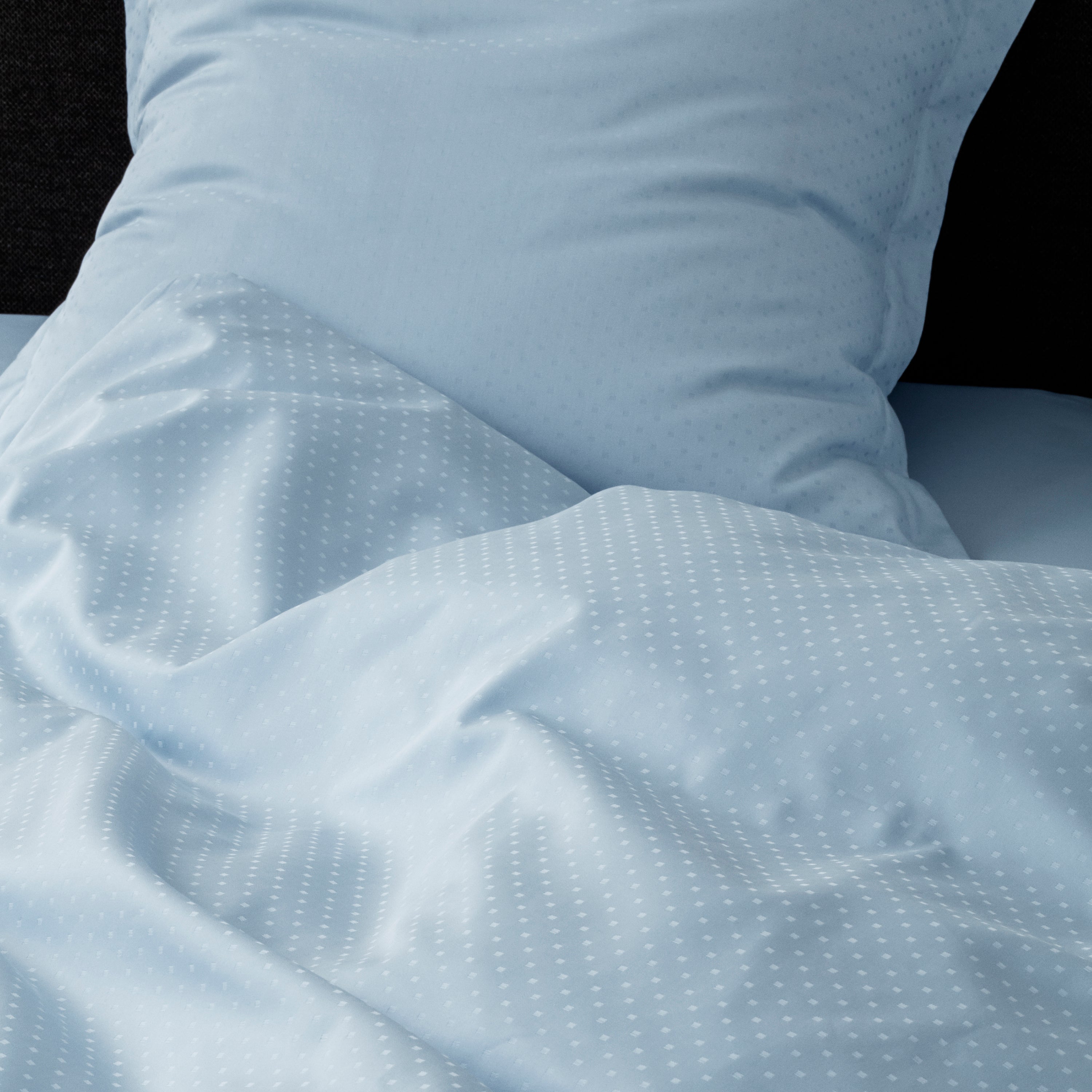 Nordlys sengetøjet har et elegant design, hvor nordlysets organiske former er oversat til et tidløst, geometrisk mønster. Light Blue er en smuk lys nuance af blå.