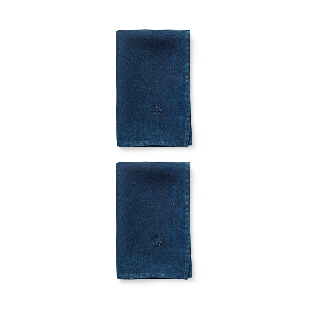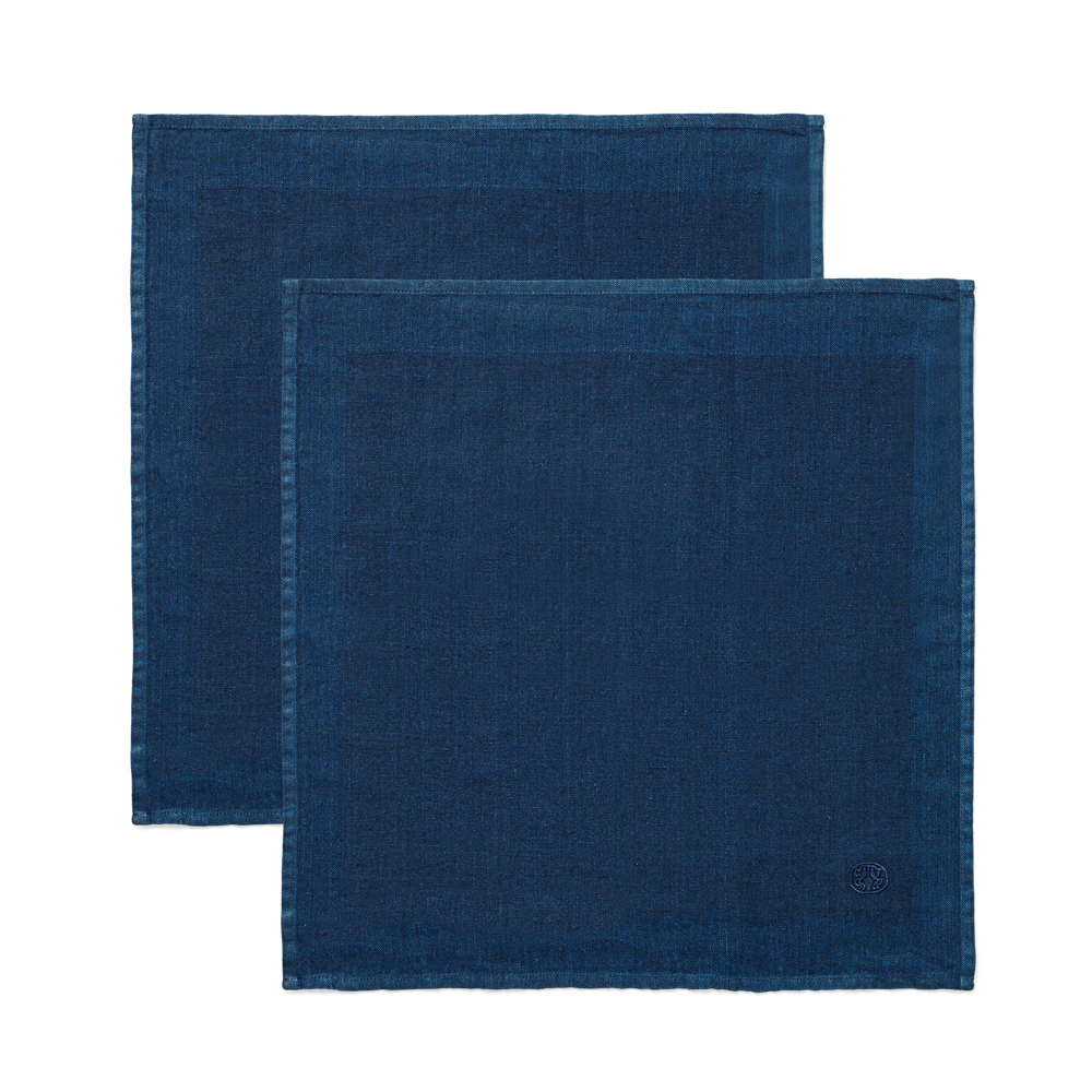 Med sit enkle design og broderede logo er den blå hørserviet en smuk og sofistikeret tilføjelse til borddækningen. Den er meget velegnet i en klassisk opdækning, men kan også skabe værdi og være en æstetisk oplevelse i en mere uformel sammenhæng, hvor der dækkes op uden dug. Lige så skøn til store middage som det enkle morgenmåltid eller ved havebordet.