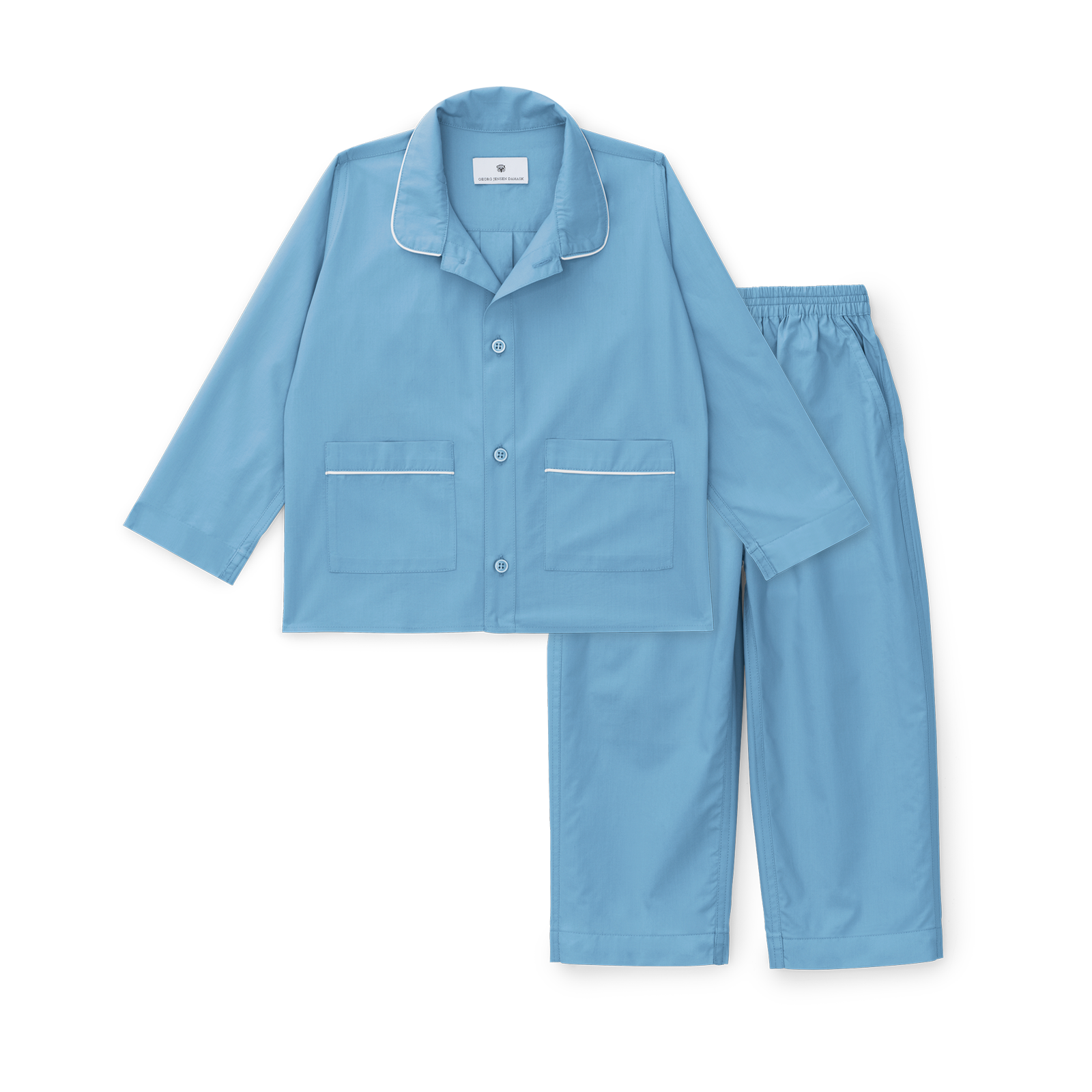 Unisex pyjamas til børn percalevævet i supimabomuld. Bright Blue er en mættet nuance af blå med referencer til den klare sommerhimmel.