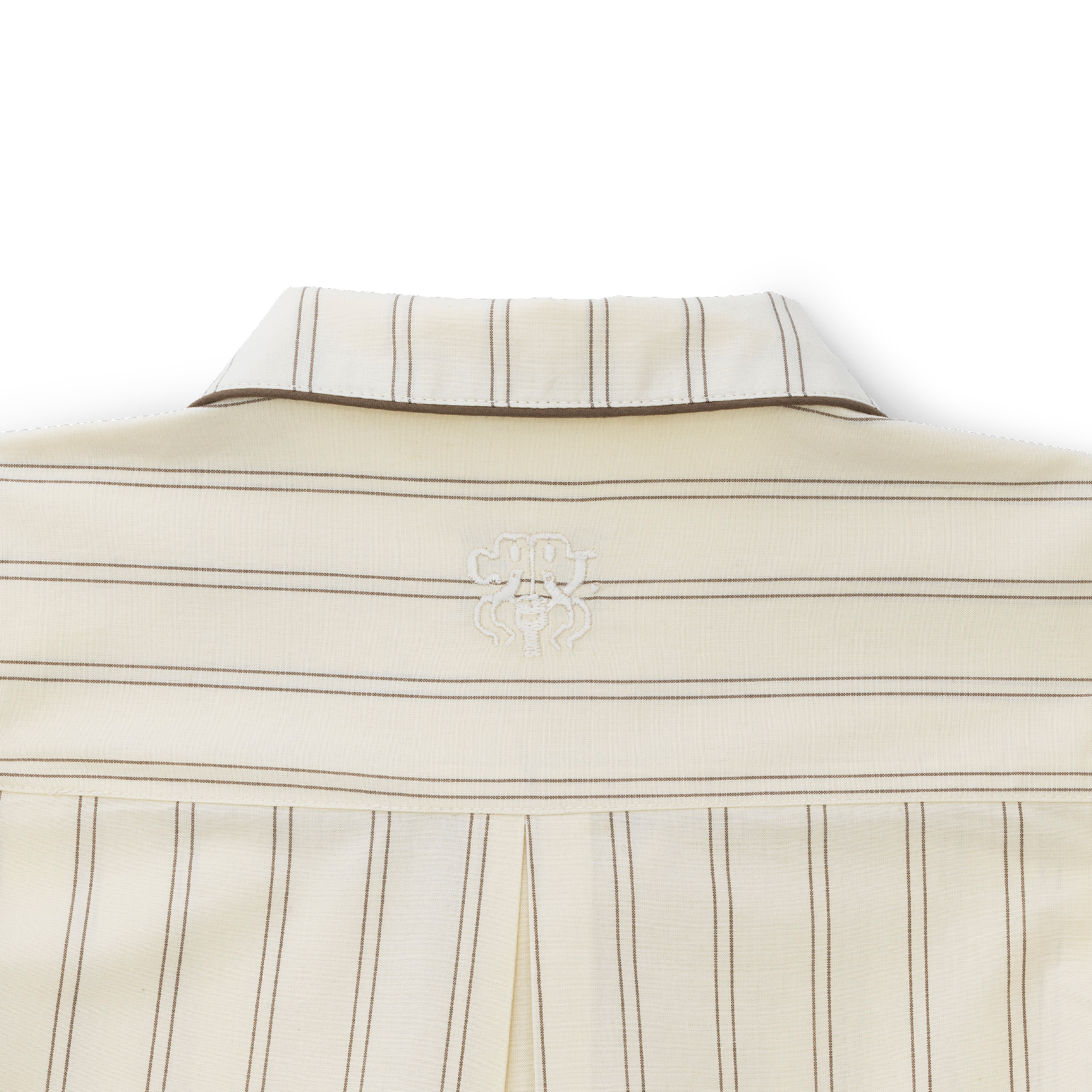 Skjorten har sideslidser, brystlomme, afrundet krave og Georg Jensen Damasks ikoniske logo broderet på bærestykket i nakken. Bukserne har en bred og behagelig elastik i taljen og lommer. Bukse- og ærmelængde kan let tilpasses med et opsmøg, hvor indersiden har en elegant piping.