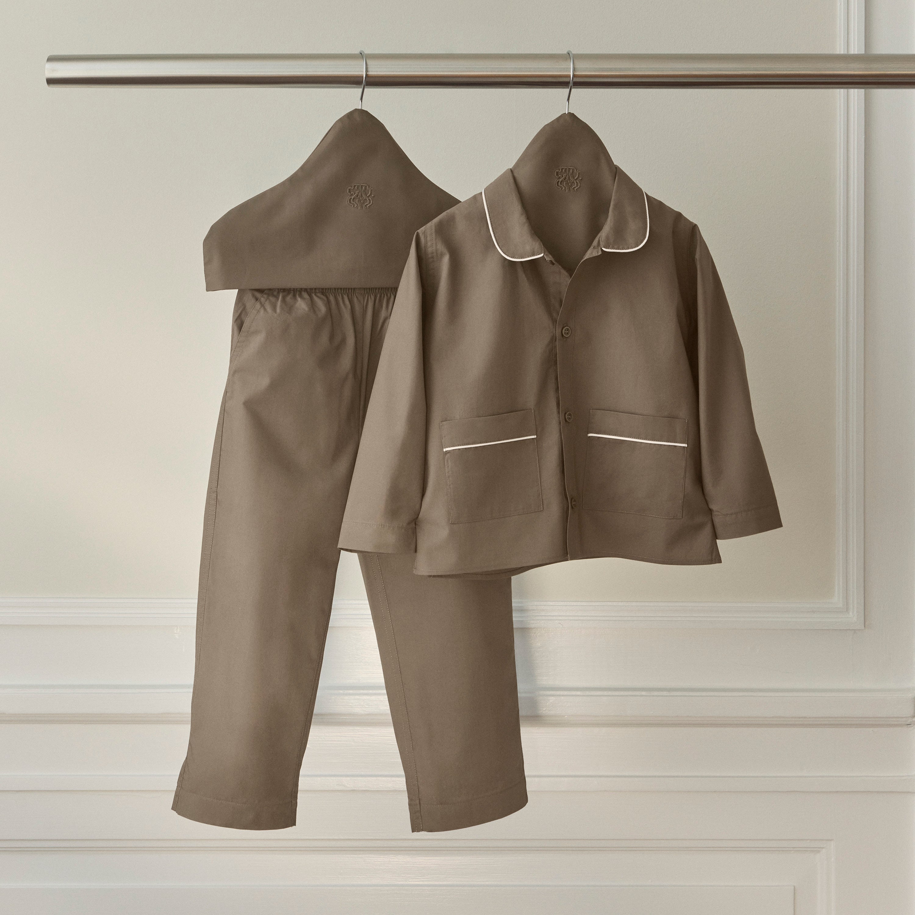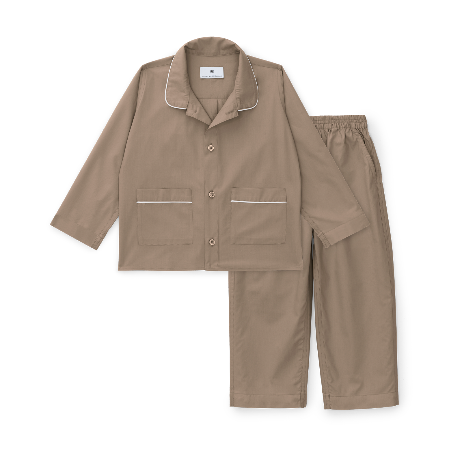 Unisex pyjamas til børn percalevævet i supimabomuld. Walnut er en dyb, nøddebrun farve.