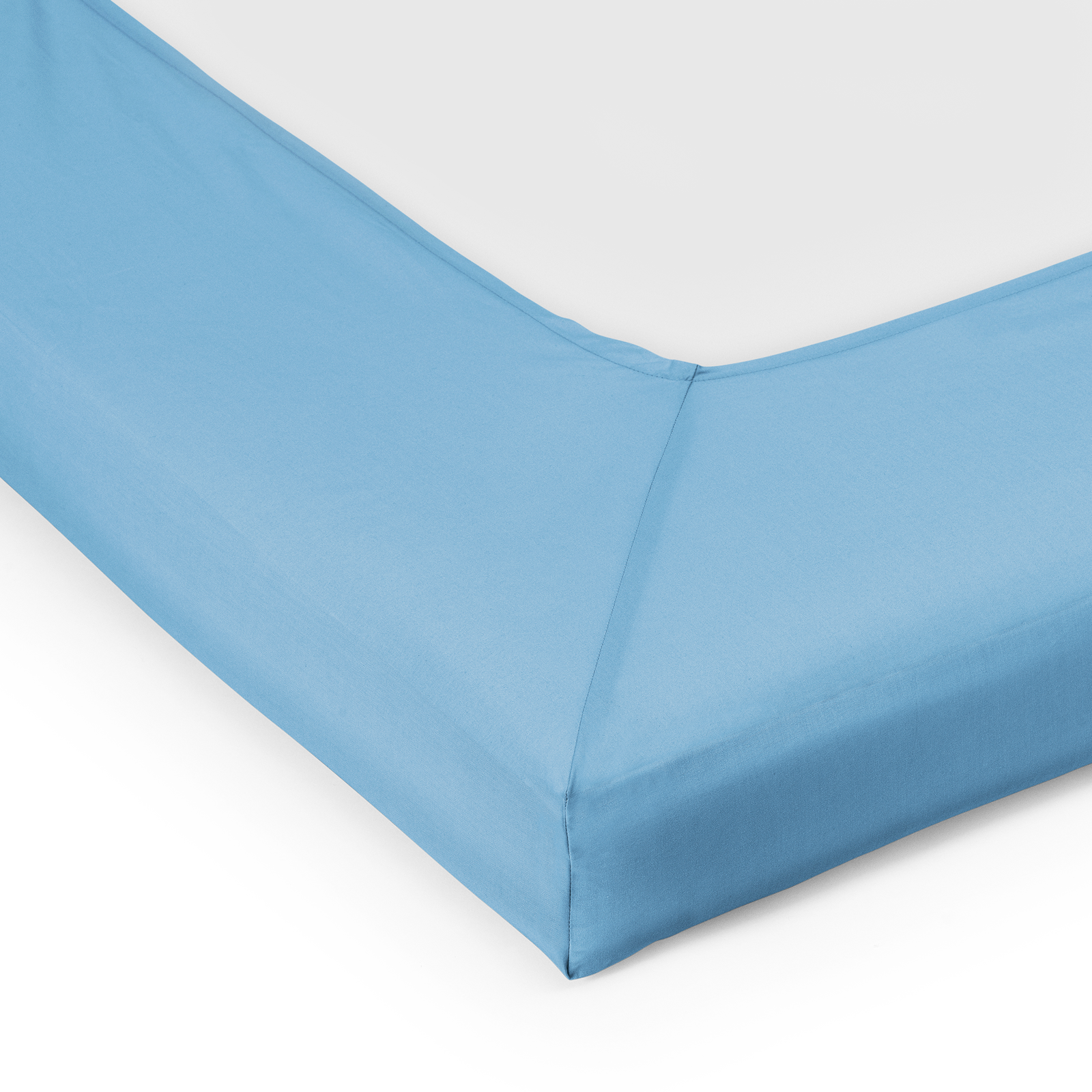 Kuvertlagnet er faconsyet og passer til en topmadras på 8 cm i højden. Lagnet bærer Georg Jensen Damasks ikoniske logo som et diskret broderi. Bright Blue er en mættet nuance af blå med referencer til den klare sommerhimmel.