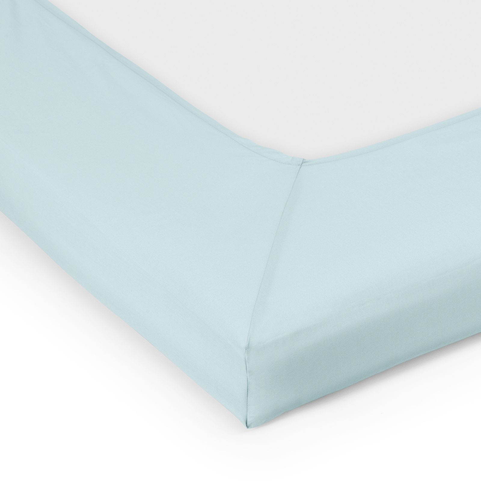 Kuvertlagnet er faconsyet og passer til en topmadras på 8 cm i højden. Lagnet bærer Georg Jensen Damasks ikoniske logo som et diskret broderi. Minimal Blue er en helt let variant af lyseblå med et strejf af aquanuancer.