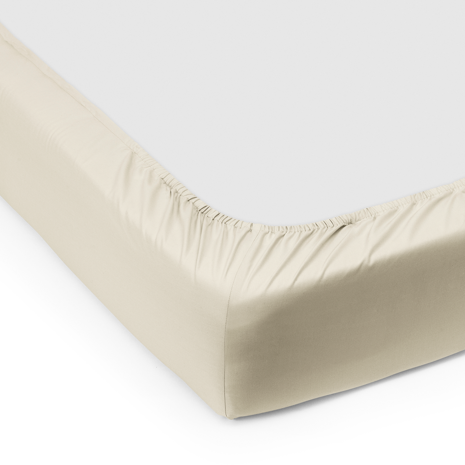 Bokslagnet er formsyet og har elastikker i hjørnerne. Lagnet bærer Georg Jensen Damasks ikoniske logo som et diskret broderi. Archive Linen er en lys beige farve med referencer til linned fra vores århundreder gamle arkiv.