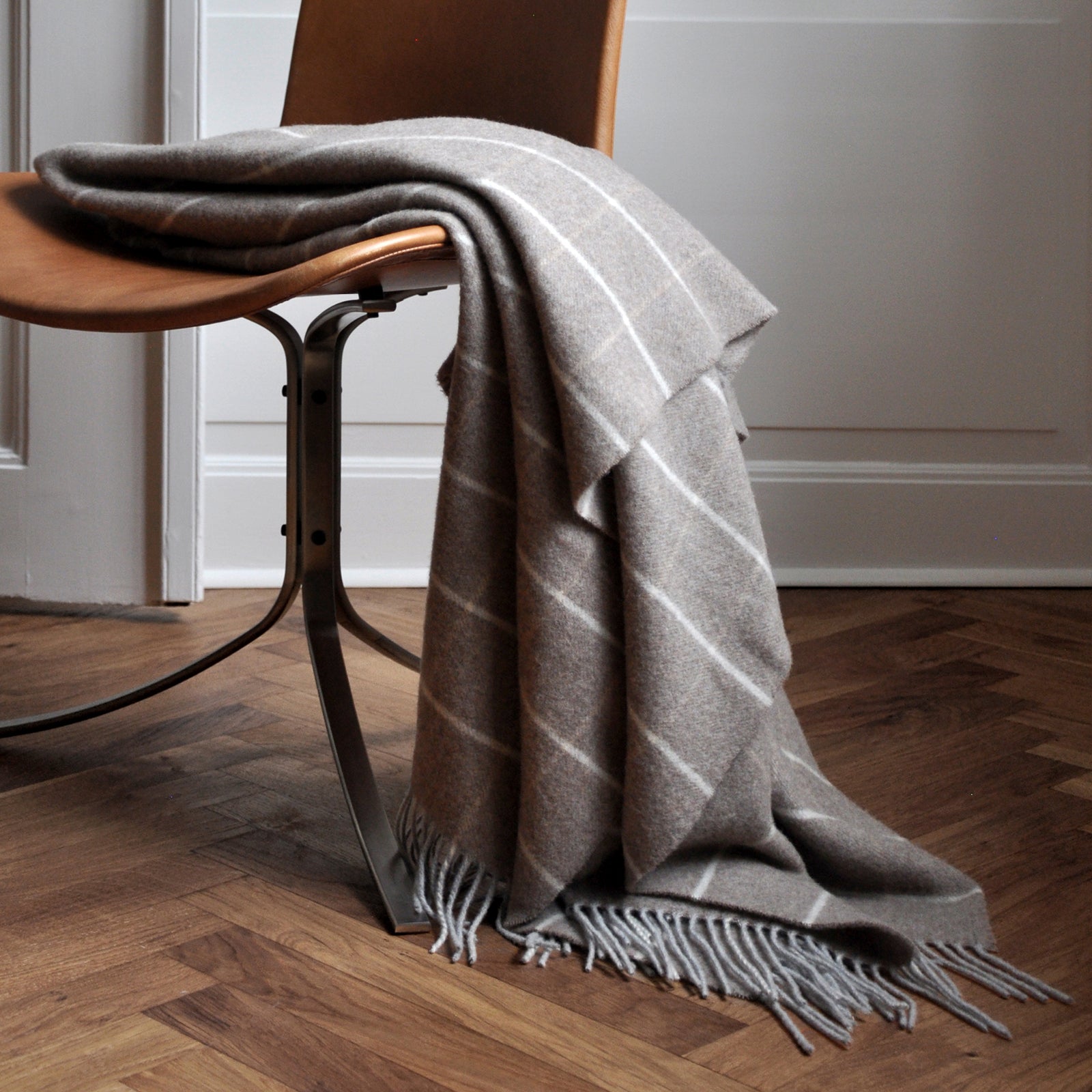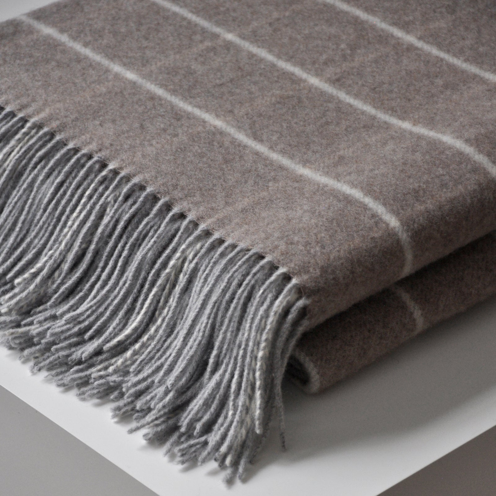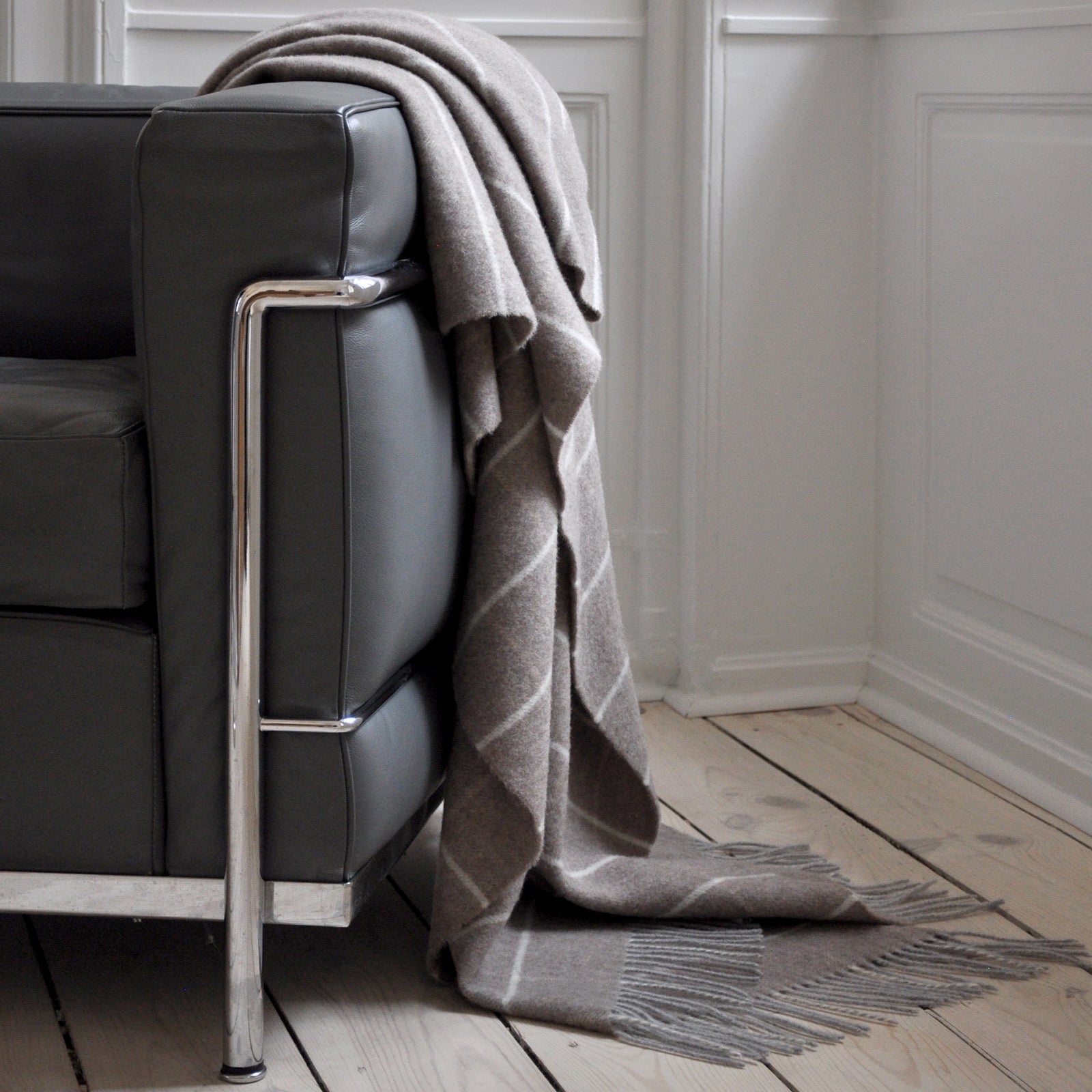 Tender Grid har et elegant, ternet mønster, som giver plaiden et klassisk udtryk. Kombination af 90 % merinould og 10 % cashmere gør plaiden ekstra blød og uldens fine struktur tilføjer en særlig lethed. Den er vævet i en nuance af brun og har lange frynser.