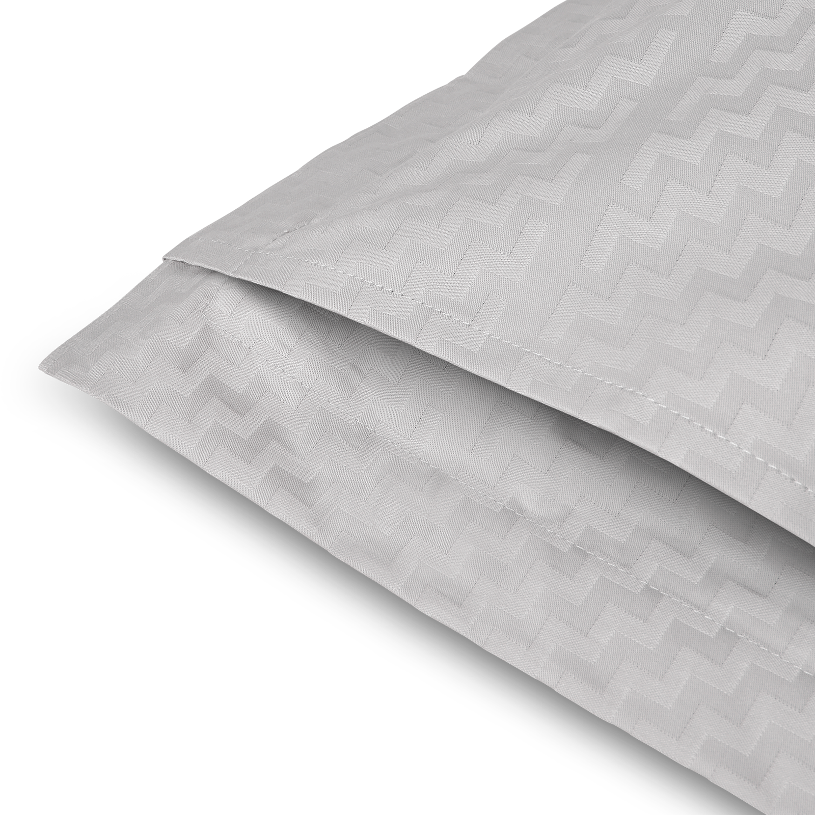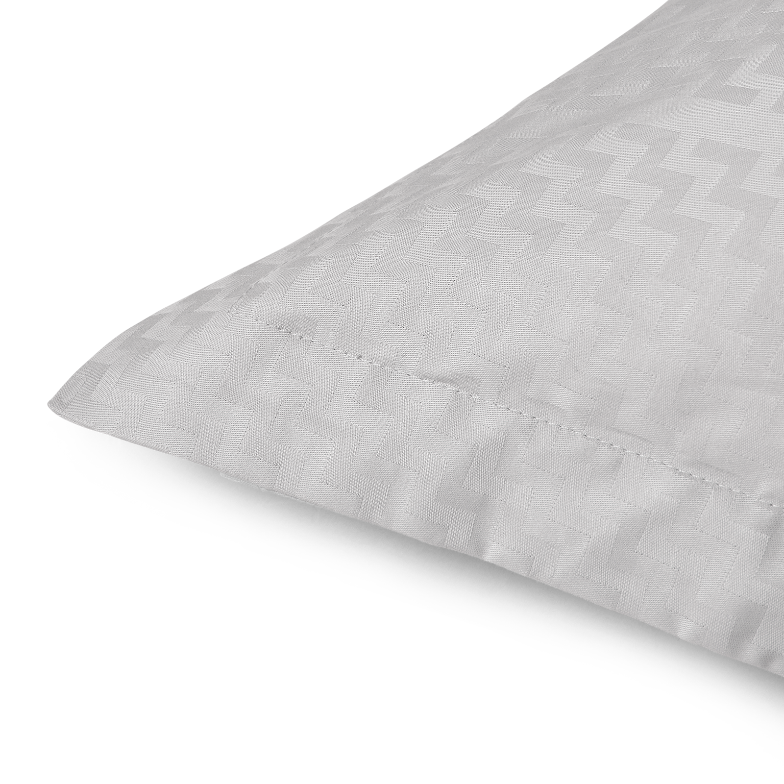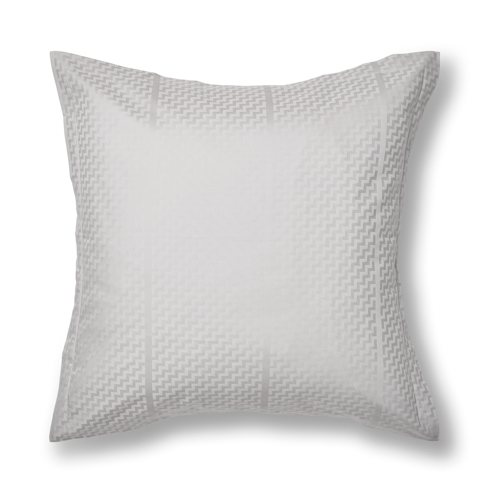 Tripp-designets geometriske mønster er udformet som en trappe, der gentages og blot brydes af en vertikal streg. Helt enkelt og harmonisk. Mønsteret på pudebetrækket træder smukt frem i damaskvævningen og bliver fremhævet yderligere af den elegante lysegrå farve, Silver Cloud.