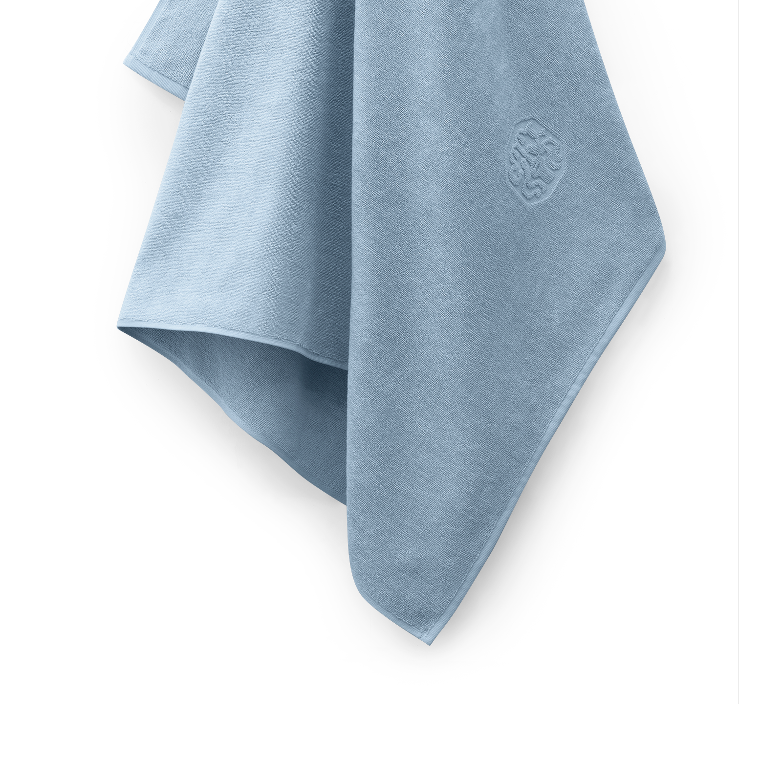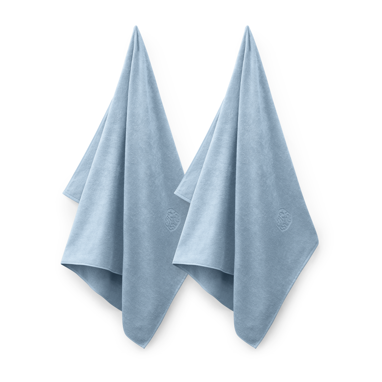 2 pcs. large and soft Damask Terry bath sheets in the colour Blue Hour – a beautiful and timeless medium blue shade. As an elegant detail, the bath sheet features Georg Jensen Damask’s iconic logo woven in.