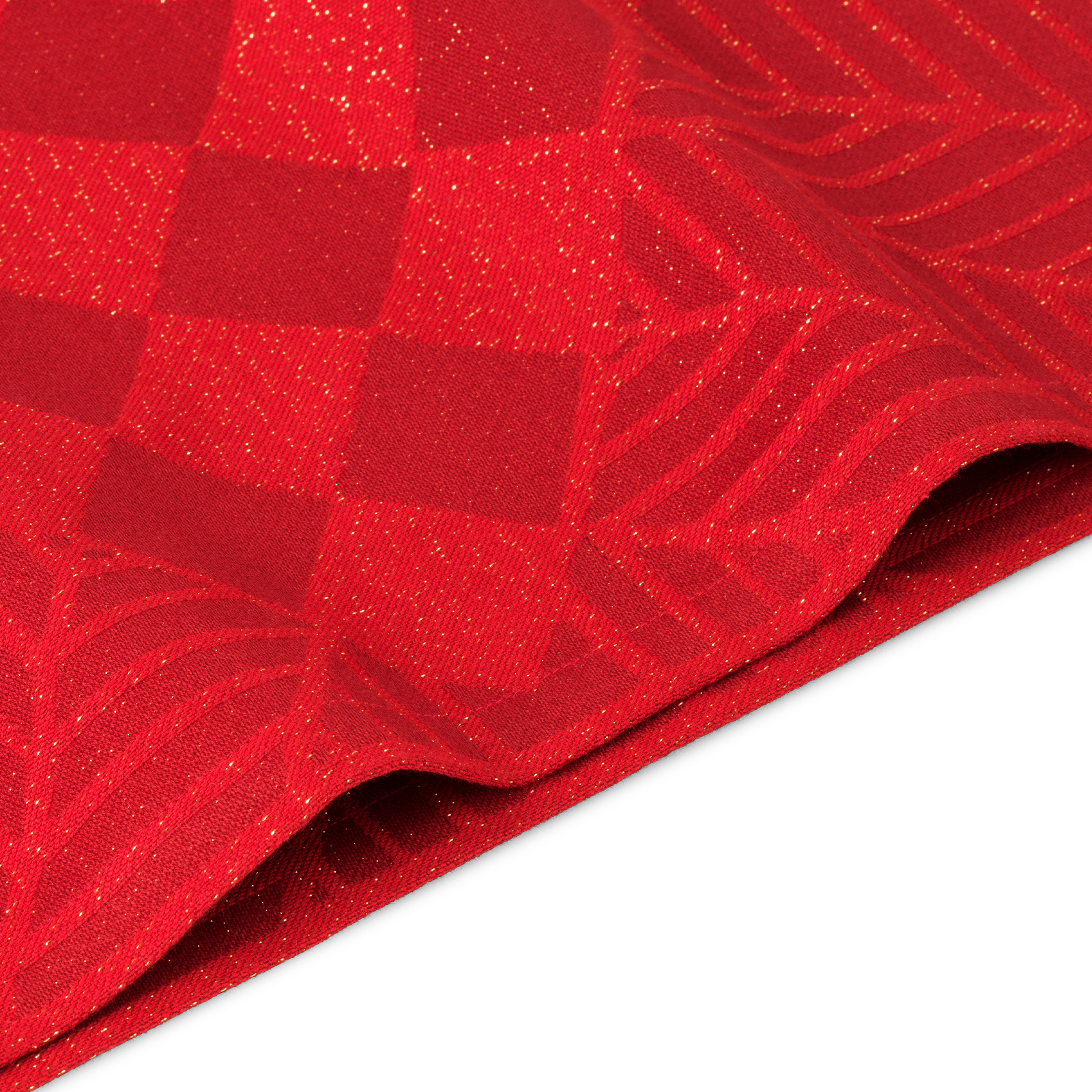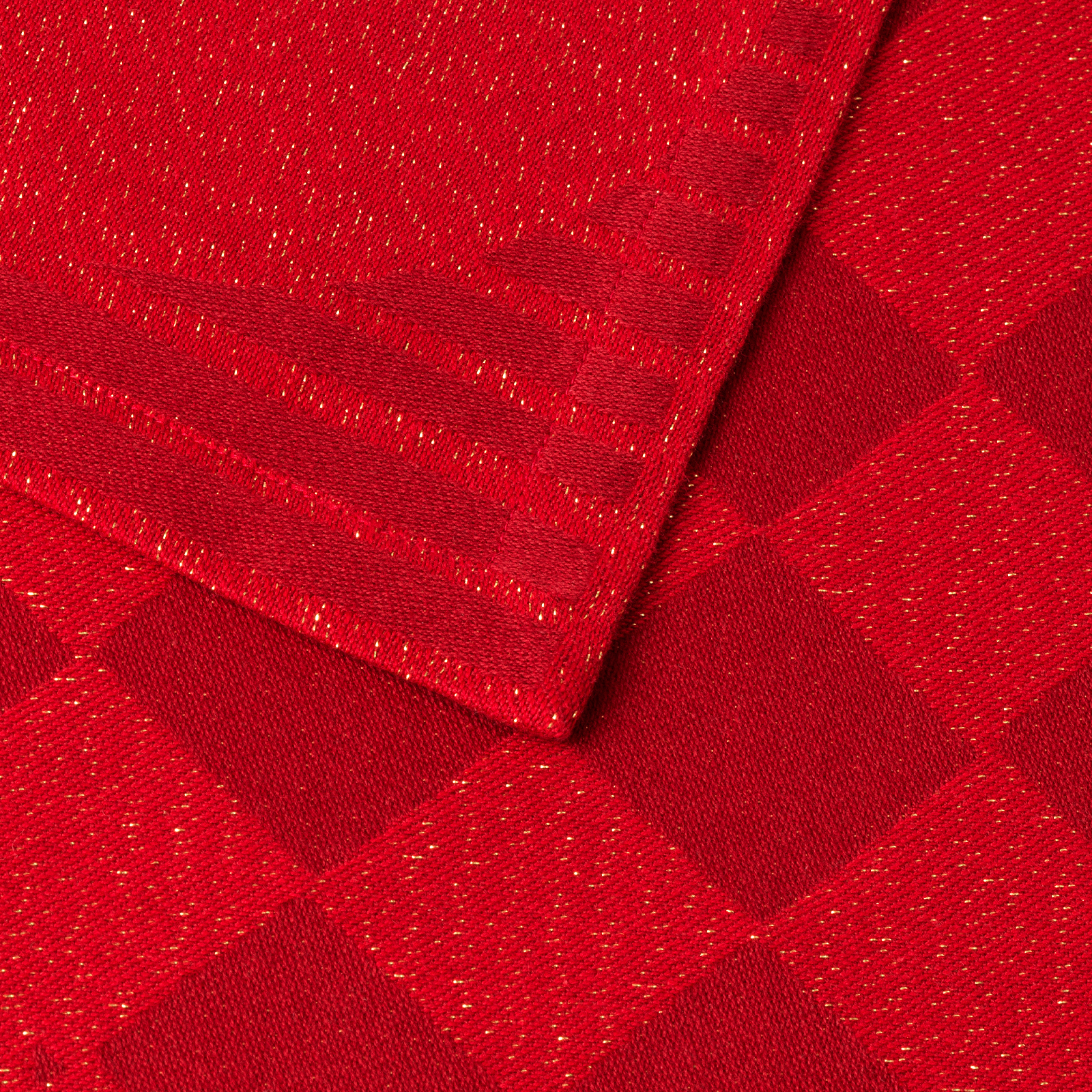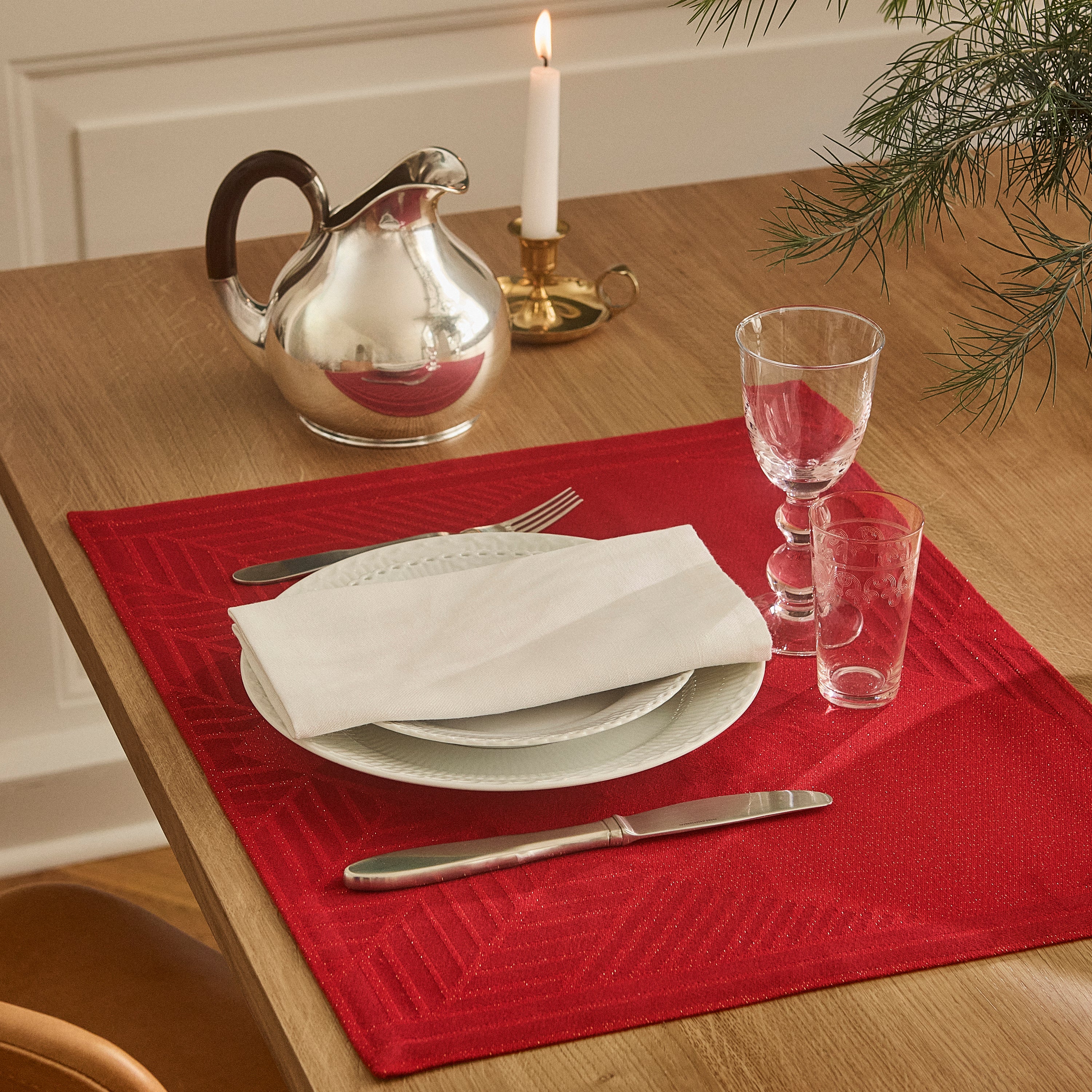 Georg Jensen Damask celebrates the 50th anniversary of its Christmas design with a sparkling touch on the iconic motif. The placemat, Christmas Rustic 50, in the Gold Red colour, is woven in delicate deep-red cotton with golden, metallic threads.