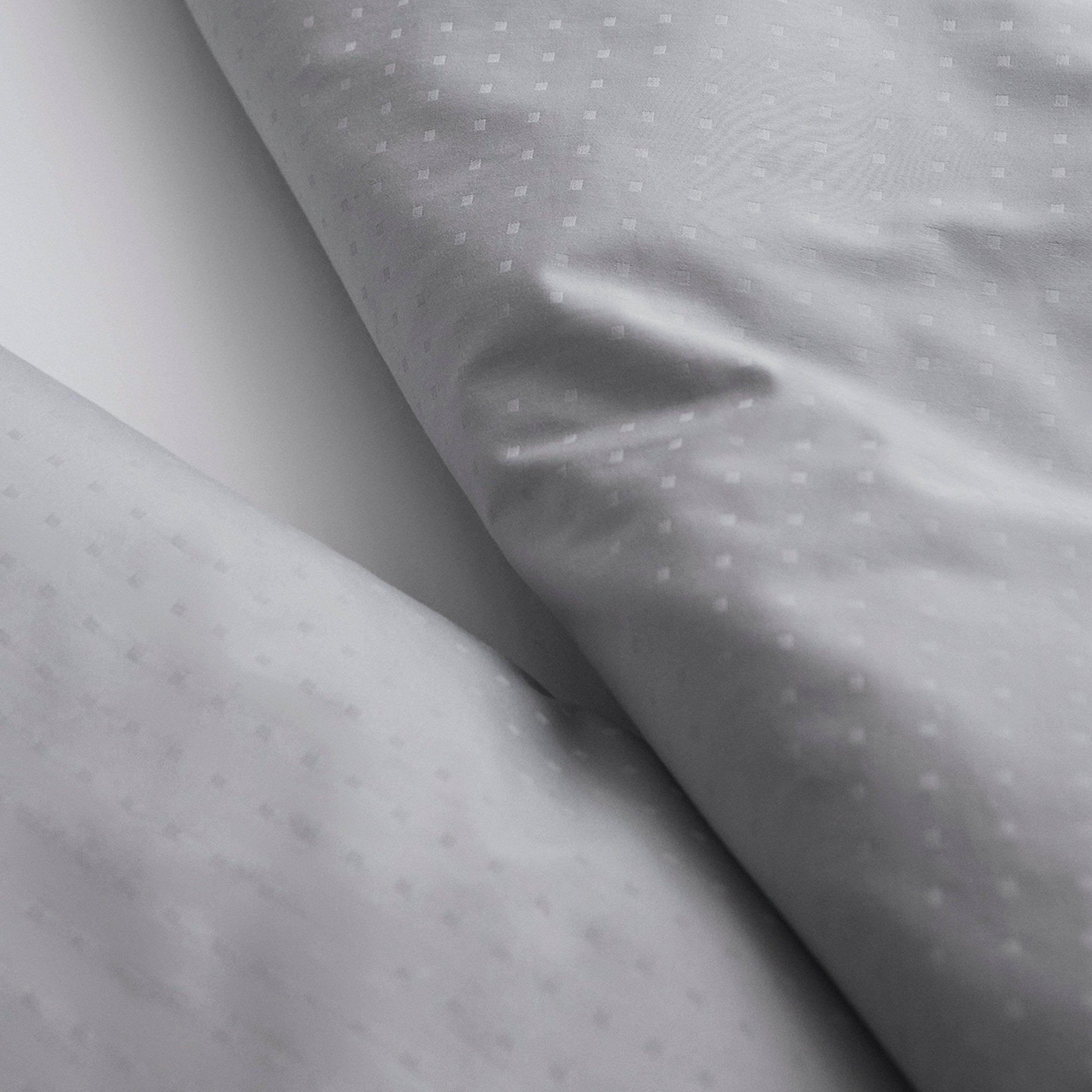 2 bedding sets in soft and lustrous fabric with a geometric pattern. The clean design with small cubes is beautifully highlighted by the reflective satin weave, giving the Light bedding a light and harmonious expression. Light is Oeko‑Tex®‑certified and woven in 100% long‑staple cotton, making it extra durable. The colour Soft Grey is a light shade of grey.