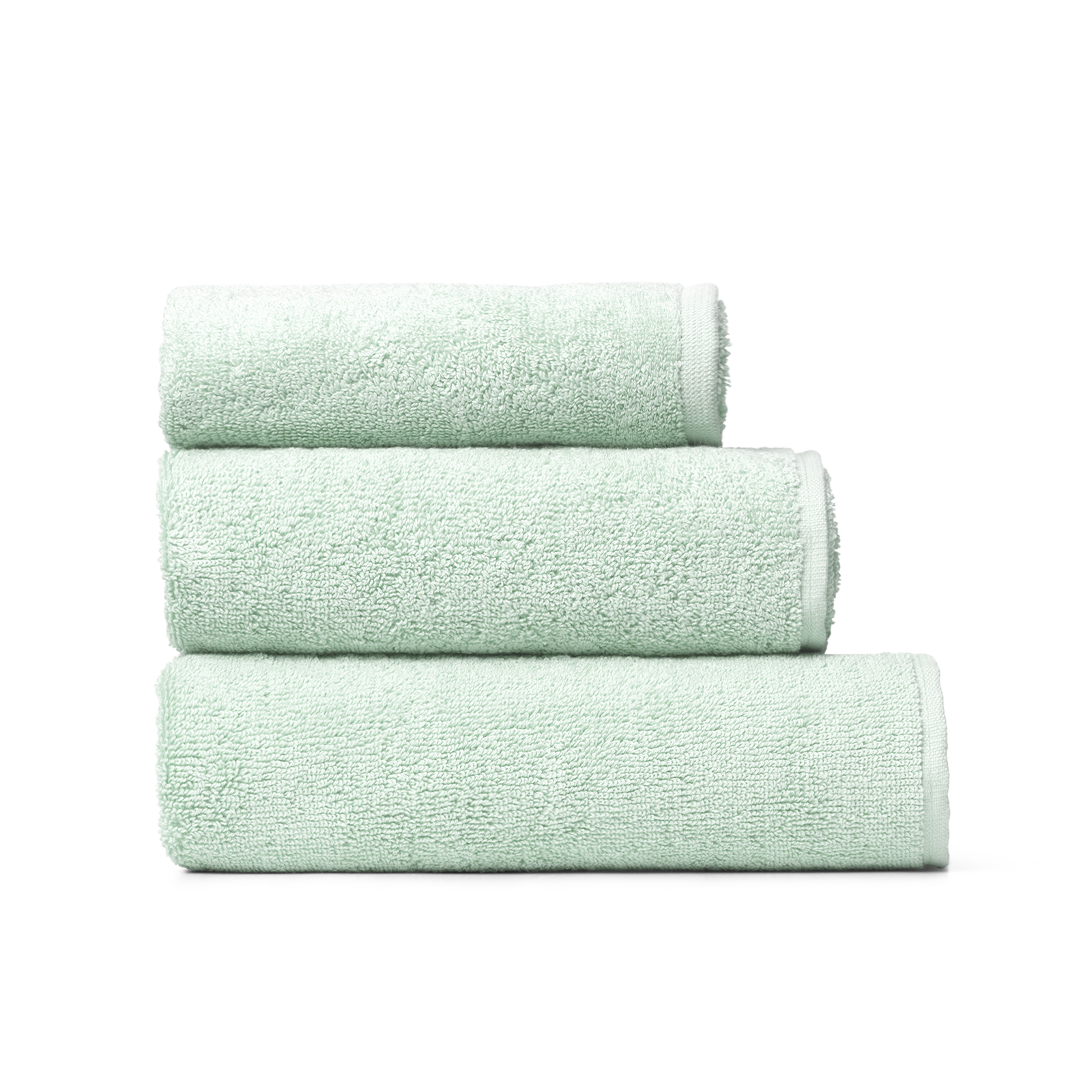 Pack of 2 Damask Terry guest towels in the color Glass Green – a green-blue shade inspired by the color of raw glass.