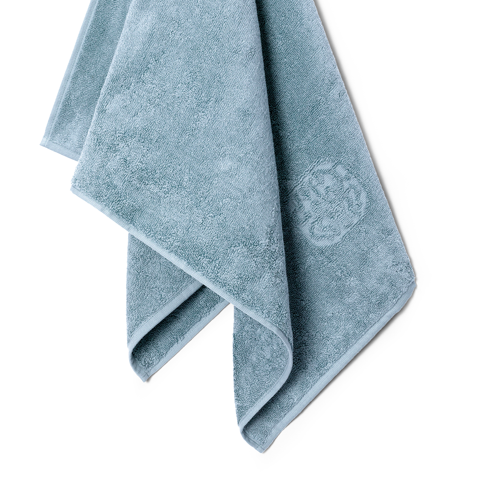 2 pcs. Damask Terry towels in the colour Blue Hour – a beautiful and timeless medium blue shade. The towels feature a simple design with Georg Jensen Damask’s iconic logo woven in as an elegant detail.
