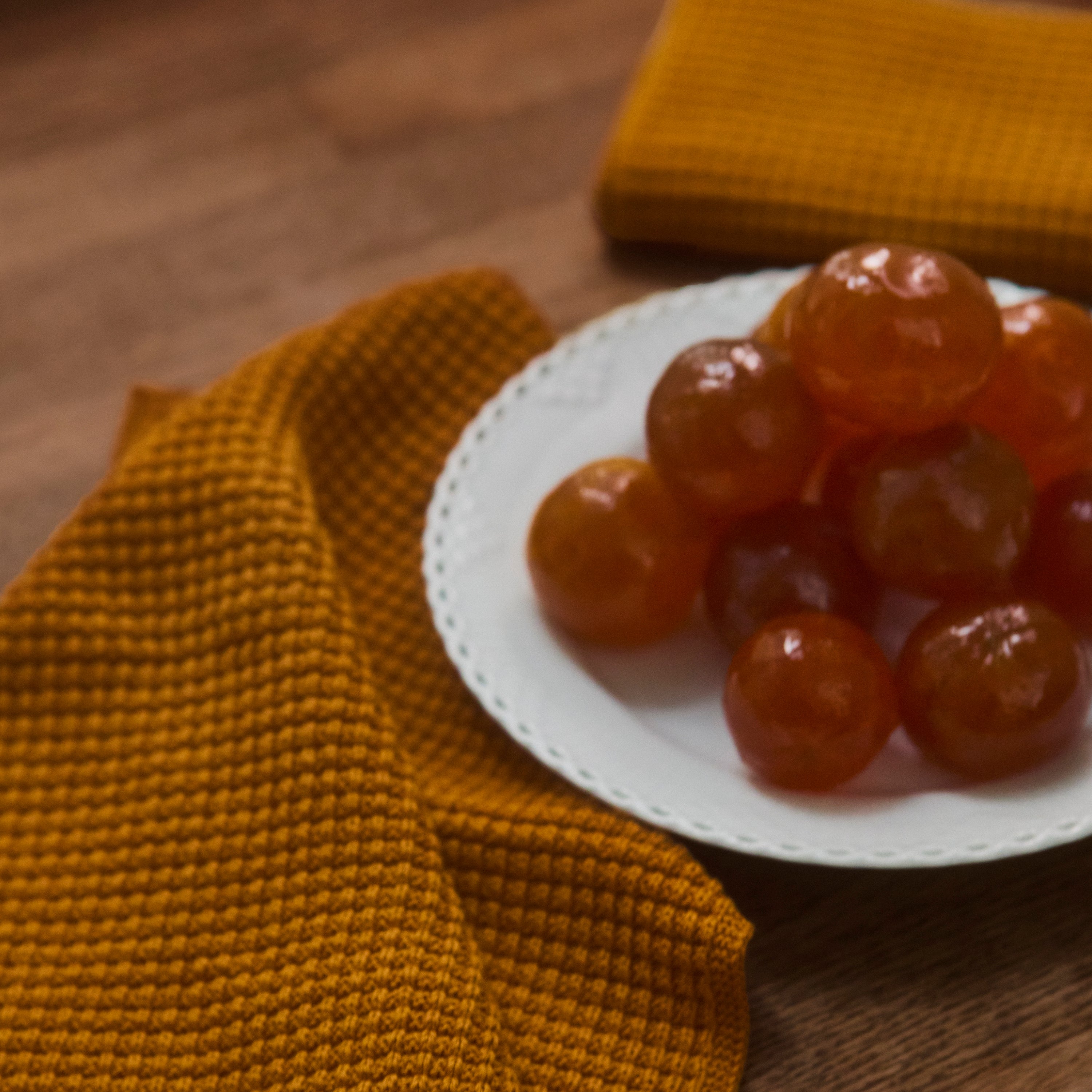 Textured knitted dishcloth in 100% cotton. Chanterelle is a deep orange with caramel undertones. The colour is inspired by the beautiful shades of the chanterelle mushroom.