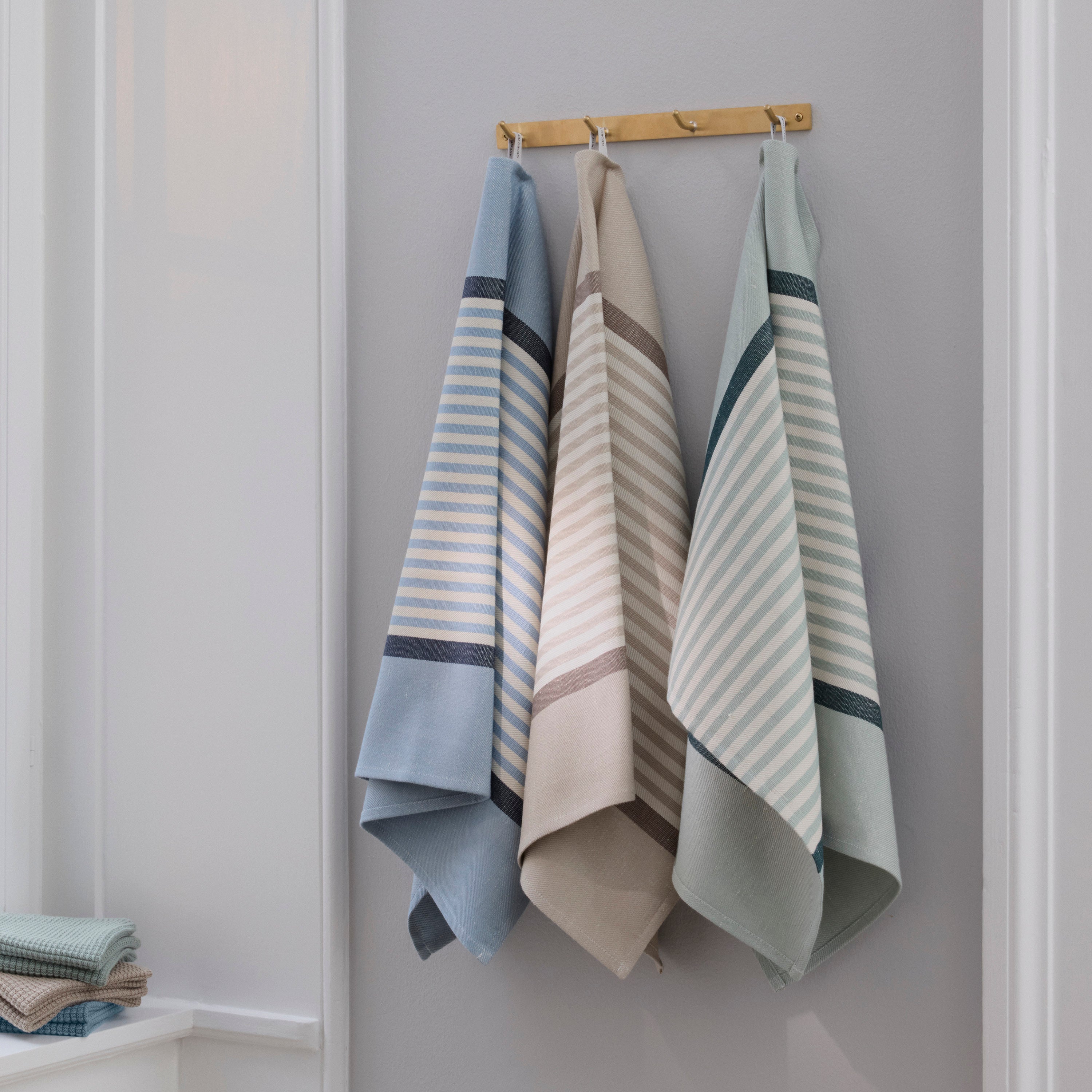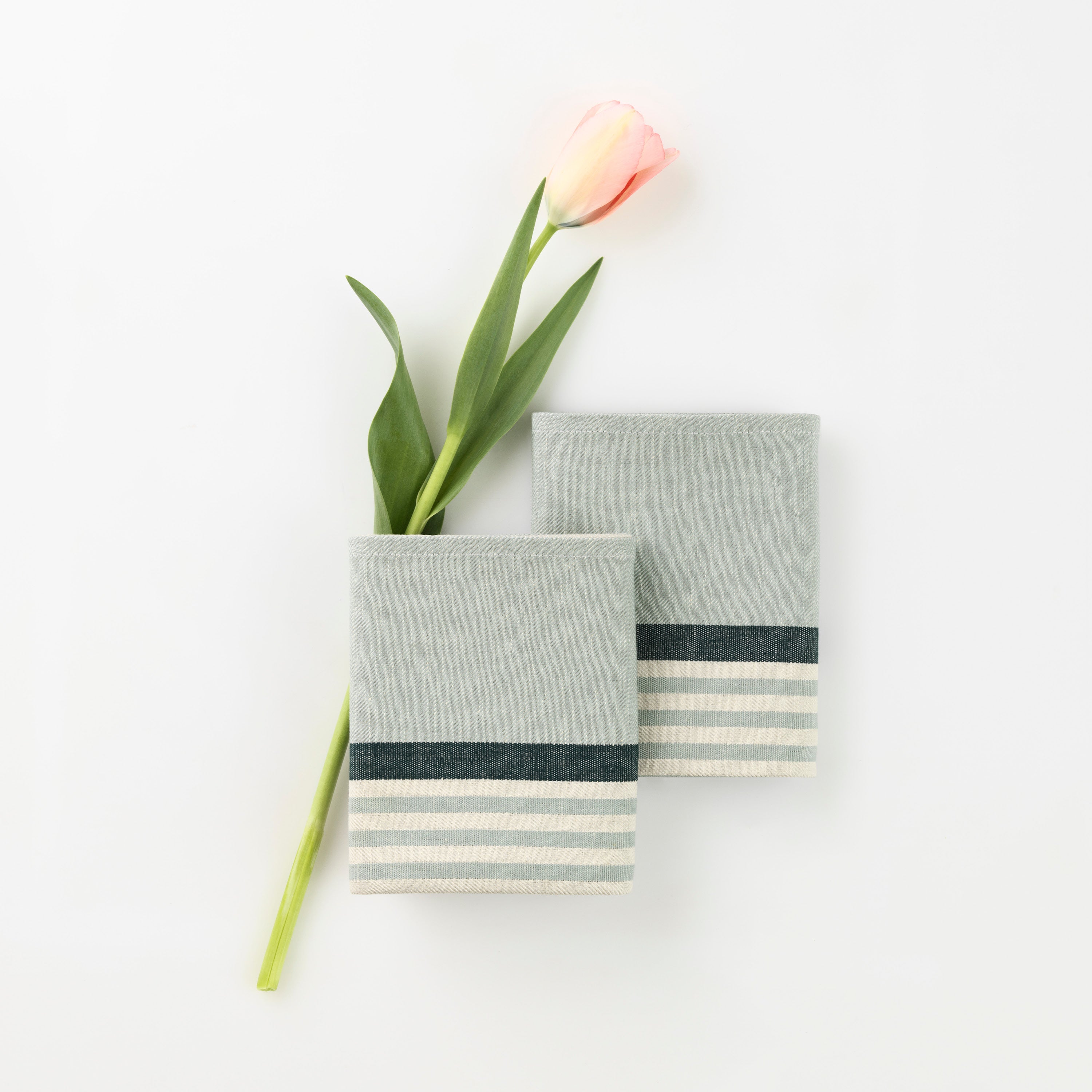 Abild is a classic in the Georg Jensen Damask collection and celebrates its 35th anniversary this year. The iconic design is woven in a blend of 50% linen and 50% cotton, and its clean, structured expression is beautiful both on its own and paired with other tea towels and kitchen textiles. The Silver Sage colour combination is a special, limited anniversary edition featuring green stripes in varying shades on a light beige background.