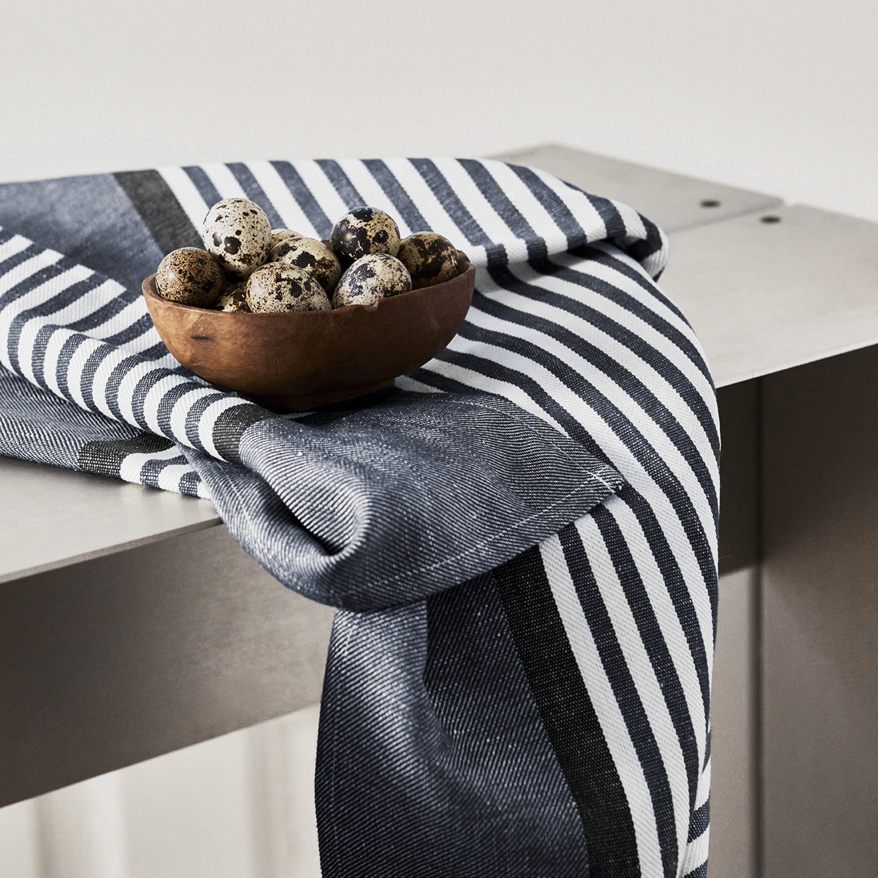 This is a classic tea towel with harmonic stripes as its bearing design element. Woven from a strong linen and cotton combination providing optimal drying capacity.