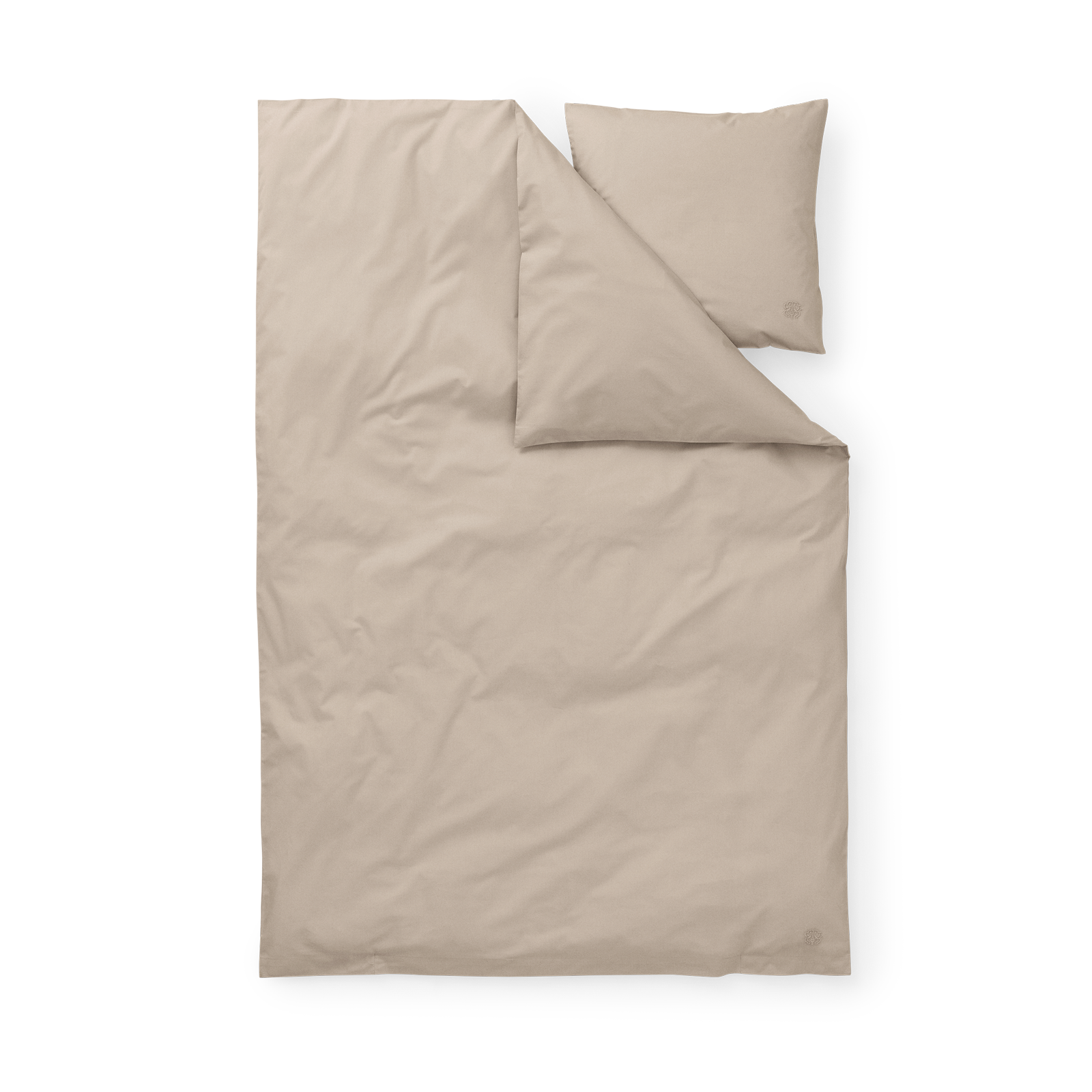 The duvet cover has a ribbon tie fastening, while the pillowcase has an envelope closure. The bed linen set features Georg Jensen Damask's iconic logo discreetly embroidered into the fabric. Cashmere is a subtle, brown-toned shade of grey with a calm and exclusive character. It is inspired by the natural colour of cashmere wool.