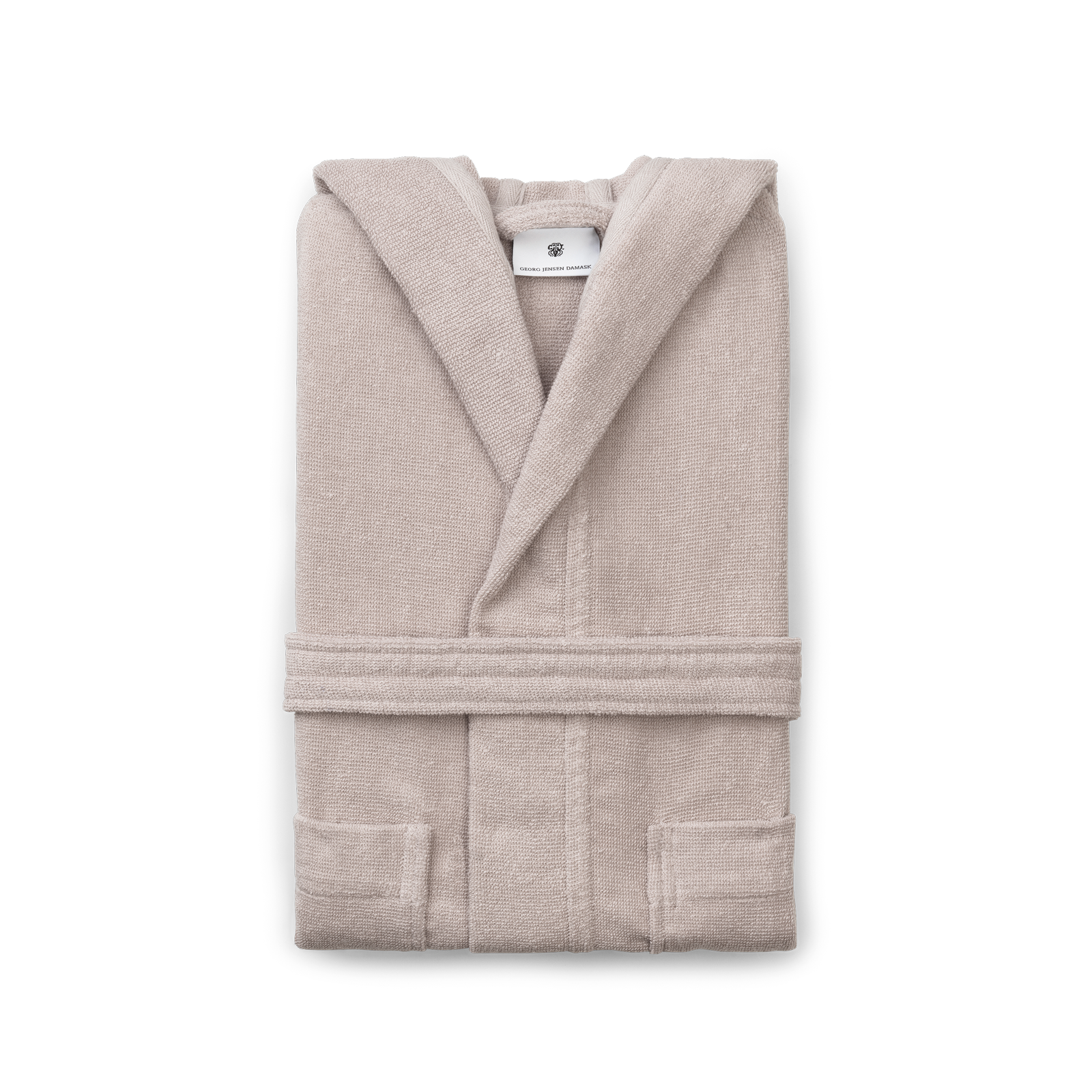 Soft and cosy terry bathrobe for children. The Terry bathrobe features a classic design with hood, pockets, waist tie and inner seams with piping. It is woven from 100% cotton with loops of double‑twisted and combed yarns, giving a beautiful and glossy finish.